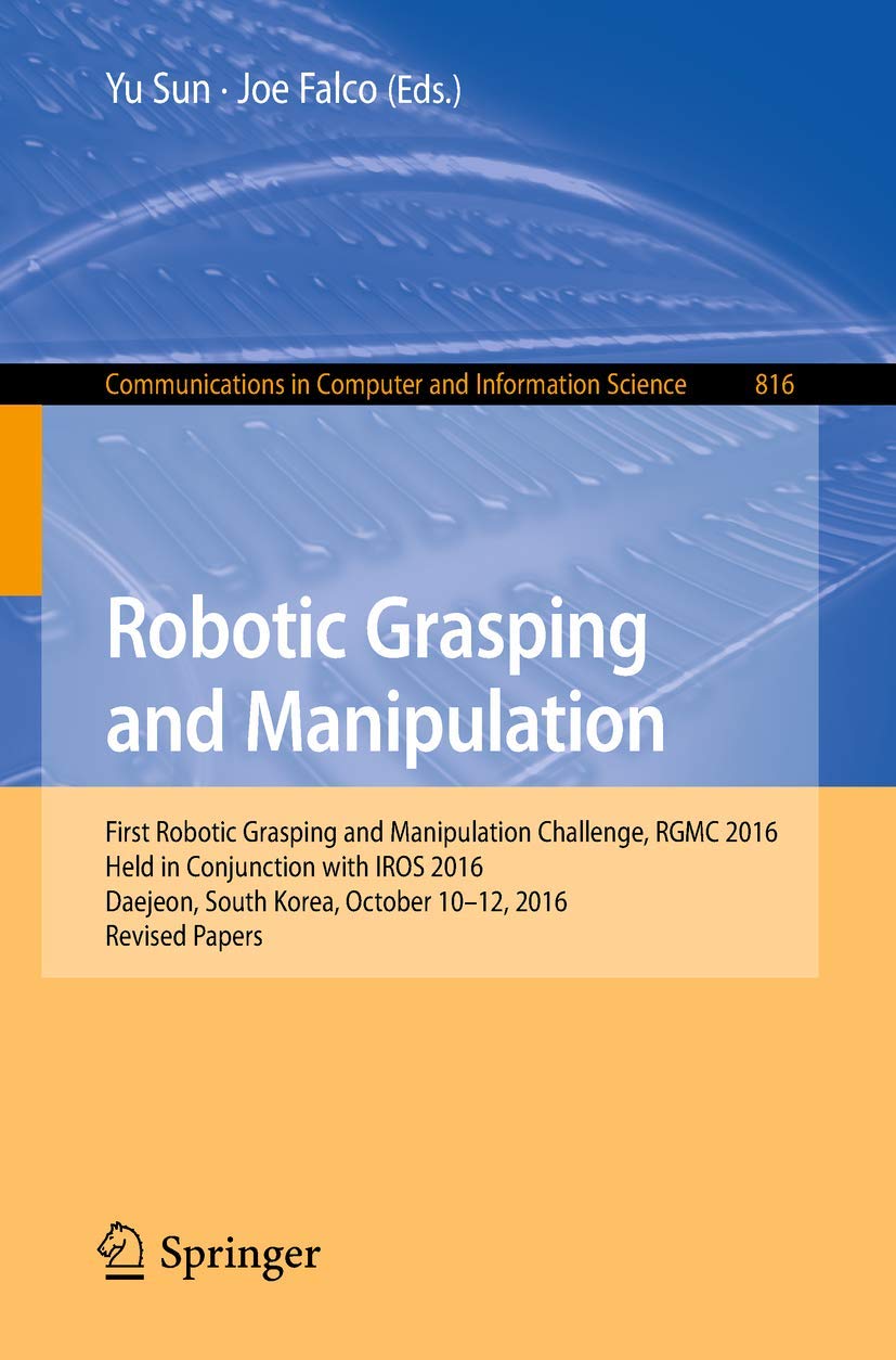 This book constitutes the refereed proceedings of the First Robotic Grasping and Manipulation Challenge, RGMC 2016, held at IROS 2016, Daejeon, South Korea, in October 2016.The 13 revised full papers presented were carefully reviewed and are describing the rules, results, competitor systems and future directions of the inaugural competition. The competition was designed to allow researchers focused on the application of robot systems to compare the performance of hand designs as well as autonomous grasping and manipulation solutions across a common set of tasks. The competition was comprised of three tracks that included handinhand grasping, fully autonomous grasping, and simulation.