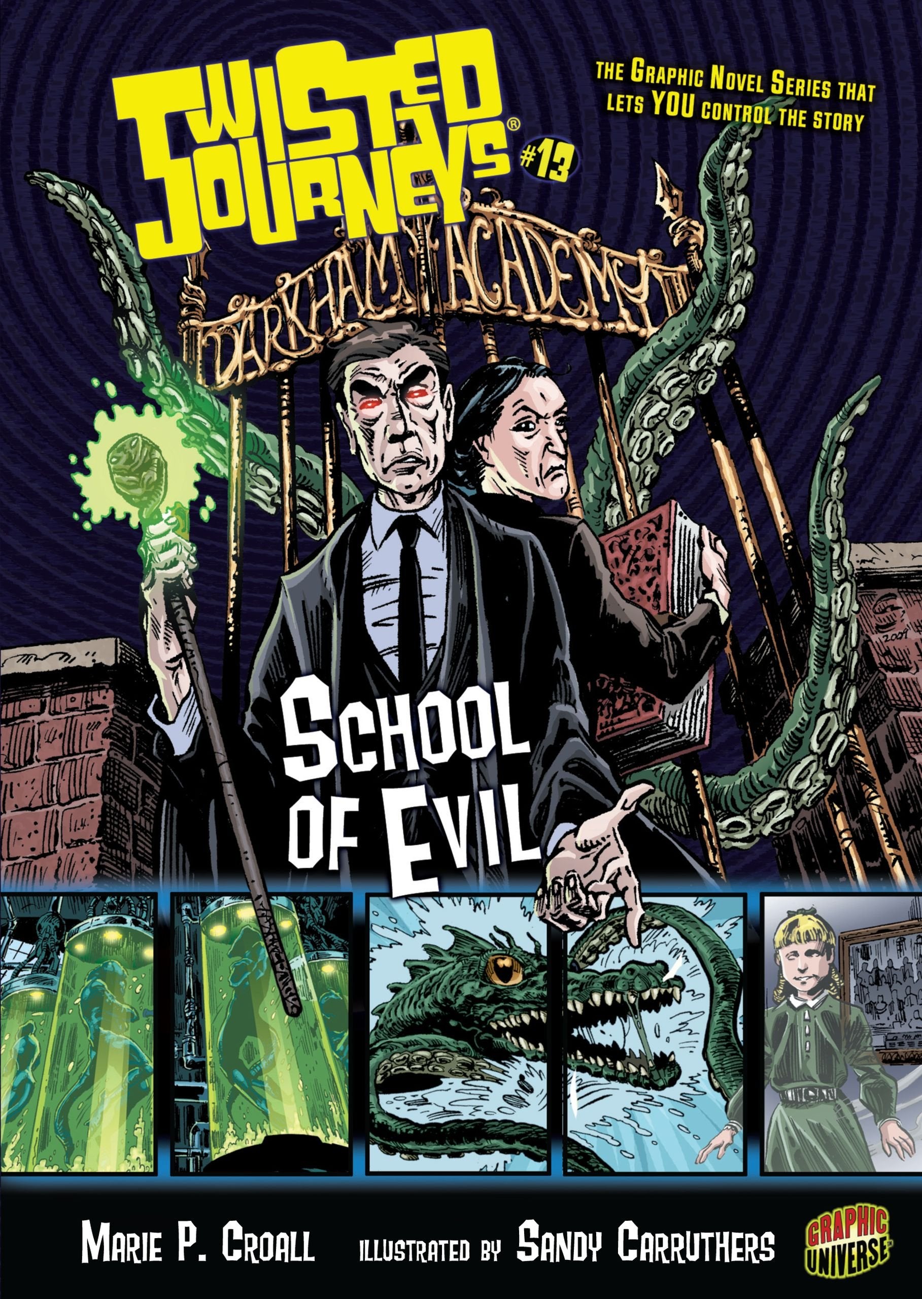At Darkham Academy, the teachers are creepy, monsters lurk in the lab, and your dorm room is haunted! Can you survive the first day of school and finish your homework on time? Every Twisted Journeys graphic novel lets YOU control the action by choosing which path to follow. Which twists and turns will your journey take?