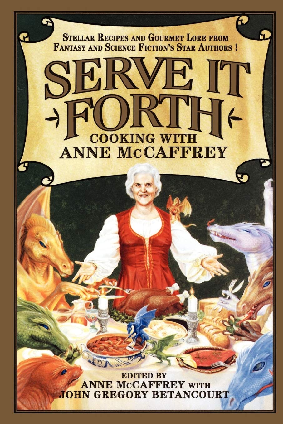 What do the world's most imaginative minds feast upon? Spiderfish Stew . . . Shrimp Anarchy . . . Surrealistic Fudge . . . Pa's Peasant Soup . . . and Marvelous Morphed Meat. How do the world's great science fiction and fantasy authors feed themselves when they're not whipping up tales of wonder? What did they eat before they were famousand what do they serve to their friends? Compiled and annotated by bestselling author Anne McCaffrey, SERVE IT FORTH is an unparalleled collection of recipes submitted by the writers themselves, so you can eat like Patricia Anthony (The I'veBeentoBrazilIKnowWhatBlackBeansAre Dip), David Gerrold (Death to the Enemies of the Revolution Chili), and Poul Anderson (The Great Pumpkin). Each wonderful, dunceproof recipe is accompanied by personal notes from the authorchefs, as they guide you into the preparation of such repasts as: Sherried Walnut Cake by Lois McMaster Bujold Pig by David Drake Comforting Clam Chowder by Peter S. Beagle Night of the Living Meatloaf by Allen Steele How (and Why) to Dress and Prepare Texas Armadillo by Ardath Mayhar Catfish and Red Meat Flavoring by Larry Niven And over 100 more! With additional dinner, dessert, and bread recipes by Joe Haldeman, Katherine Kurtz, Mercedes Lackey, John Brunner, Joan Vinge, M. K. Wren, and many more.