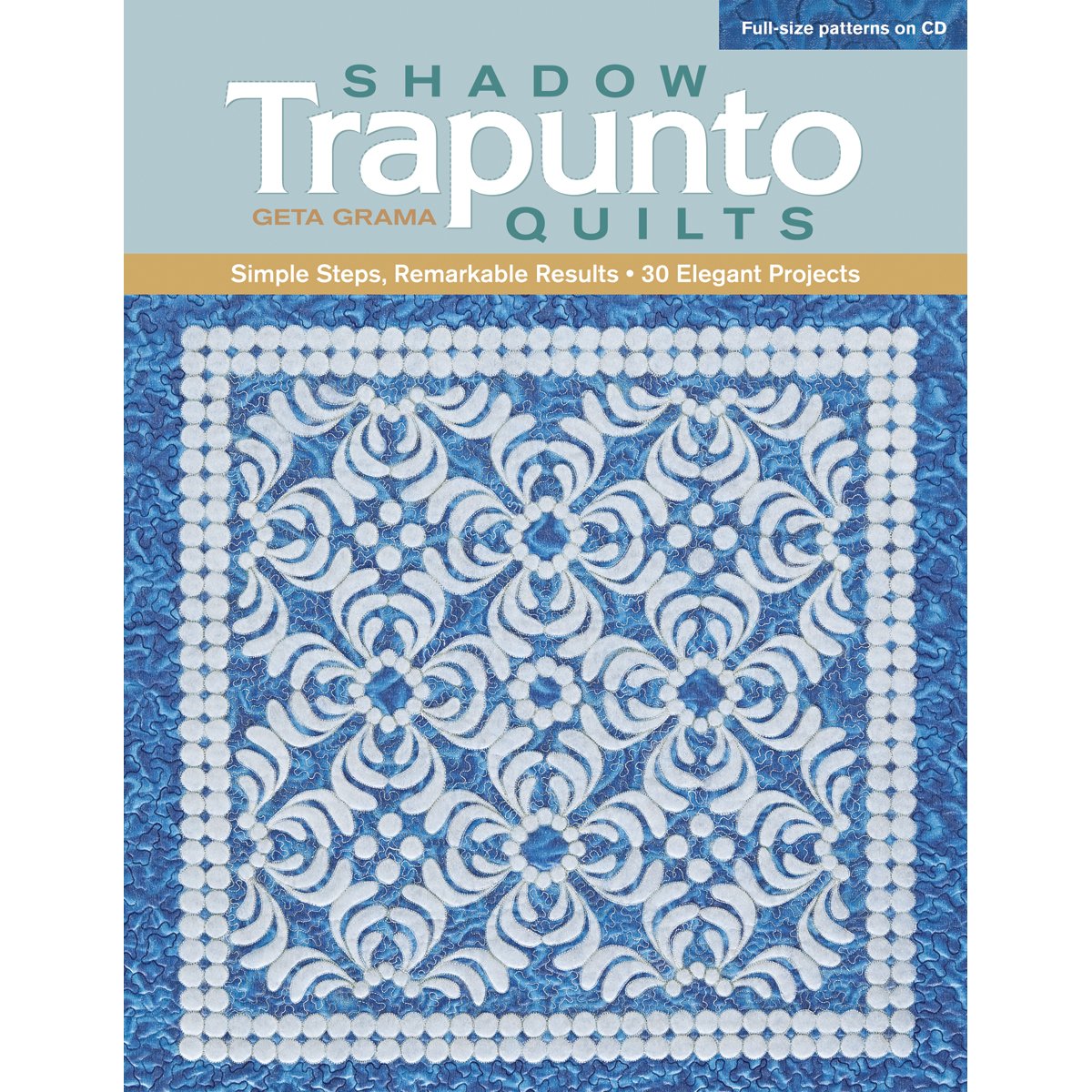 Author Geta Gramas passion for fabrics, color and patterns is contagious! Youll be captivated by the elegance and grace of these intricatelooking shadow trapunto quiltsespecially once you discover how simple they are to make. The book features 30 projects (postcards, pillows, tablerunners, and wallhanging quilts) with wholecloth, pieced, or appliqu backgrounds, and a variety of shapes, squares, circles, hexagons, octagons, and 12sided (dodecagon). Patterns to enlarge are given in the book and fullsize patterns are on the CD.