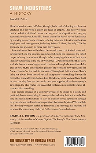 Shaw Industries, Which Is Based In Dalton, Georgia, Is The Nation'S Leading Textile Manufacturer And The World'S Largest Producer Of Carpets. This History Focuses On The Evolution Of Shaw'S Business Strategy And Its Adaptations To Changing Economic Conditions. Randall L. Patton Chronicles Shaw'S Rise To Dominance By Drawing On Corporate Records, Industry Data, And Interviews With Shaw Employees And Management, Including Robert E. Shaw, The Only Ceo The Company Has Known In Its More Than Thirty Years.Patton Situates Shaw Within Both The Overall Context Of Sunbelt Economic Development And The Unique Circumstances Behind The Success Of The Tufted Carpet Industry In Northwest Georgia. After Surveying The State Of The Carpet Industry Nationwide At The End Of World War Ii, Patton Then Tells The Shaw Story From The Boom Years Of 19551973, Through The Transitional Decade Of 19731982, The Consolidation Phase Of The 1980S And Early 1990S, And The 'New Economy' Of The Mid To Late 1990S. Throughout, Patton Shows, Shaw'S Drive Has Always Been Toward Vertical Integrationcontrolling The Outside Forces That Could Affect Its Bottom Line. He Tells, For Instance, How Shaw Built Its Own Trucking Fleet And Became Its Own Yarn Supplier, All To The Company'S Advantage. He Also Relates Less Successful Ventures, Most Notably Shaw'S Attempt At Direct Retailing.The Picture Emerges Of A Company Proud Of Its Image As A Steady And Profitable Business Surviving In A Competitive Industry. Patton Traces The History Of Shaw Industries From Its Start As A Familyowned Operation Through Its Growth Into A Multinational Corporation That Recently Joined Warren Buffett'S Holding Company, Berkshirehathaway. The Shaw Saga Has Much To Tell Us About The Continuing Vitality Of 'Old Economy' Manufacturers.