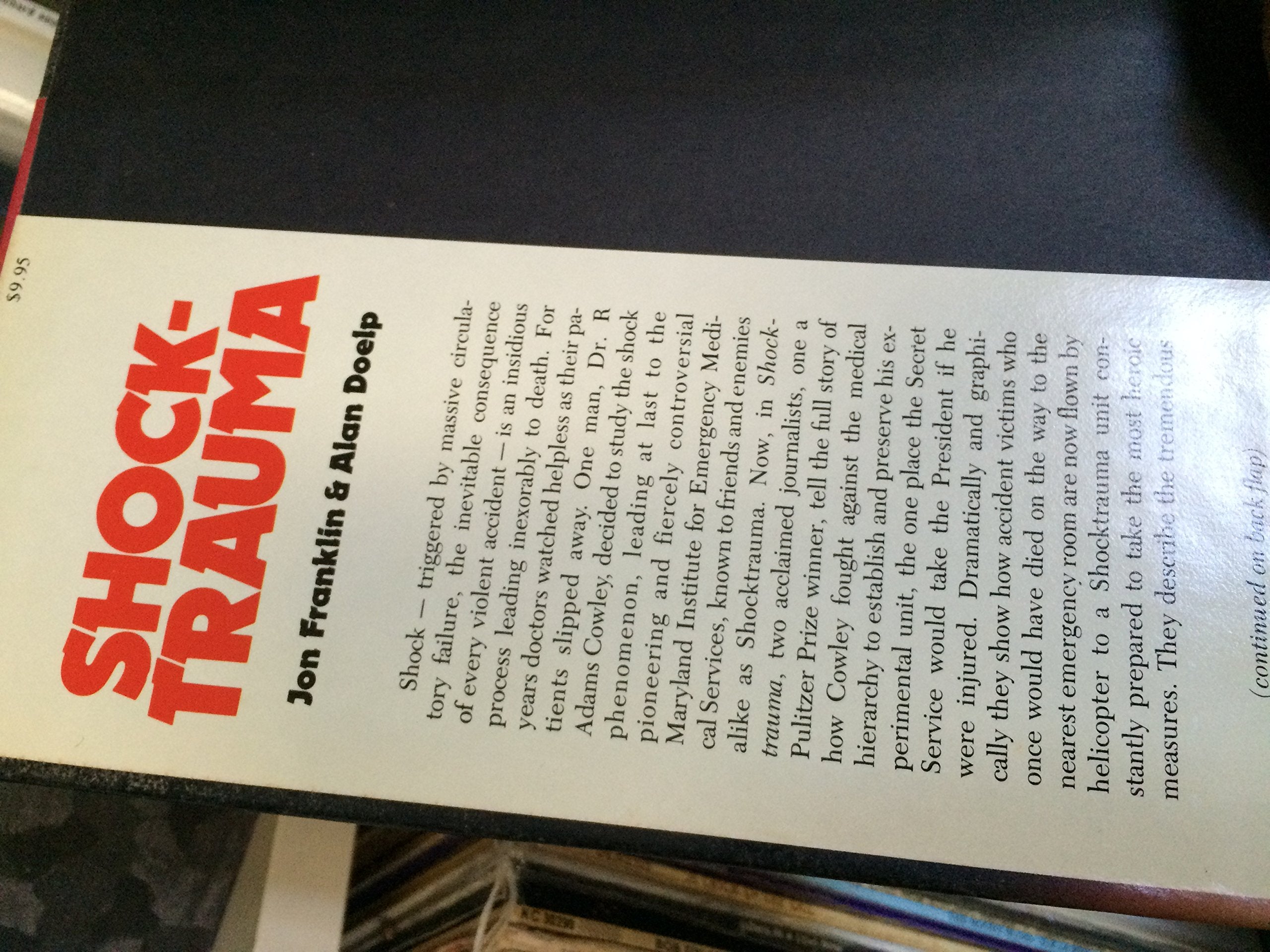 This book tells of the origin of the trauma system in our country today. It is a must read of everyone still, since trauma centers are closing annually. This book makes clear why we still need trauma centers. The Shock Trauma Center, in Baltimore, Maryland, is an amazing place with heroic people, performing a job that is beyond our grasp to to understand, nor deal with. The book stands up well to the passage of time. R Adams Cowley is the father of the US shock trauma system, and he founded shock trauma MD.