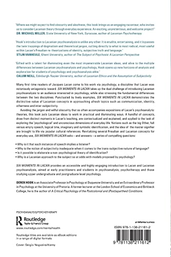 Many firsttime readers of Jacques Lacan come to his work via psychology, a discipline that Lacan was notoriously antagonistic toward. Six Moments in Lacan takes up the dual challenge of introducing Lacanian psychoanalysis to an audience interested in psychology, while also stressing the fundamental differences between the two disciplines. Punctuated by lively examples, Six Moments in Lacan demonstrates the distinctive value of Lacanian concepts in approaching afresh topics such as communication, identity, otherness and intersubjectivity.Avoiding the jargon and wilful obscurity that so often accompanies expositions of Lacans psychoanalytic theories, this book puts Lacanian ideas to work in practical and illuminating ways. A handful of concepts, draw from distinct moments in Lacans teaching, are contextualized and explained, and applied to the task of exploring the psychological and unconscious dimensions of everyday life. Notions such as the big Other, full versus empty speech, logical time, imaginary and symbolic identification, and the idea of the master signifier are brought to life via popular cultural references. Revitalizing several Freudian and Lacanian concepts for everyday use, Six Moments in Lacan asks and answers a series of compelling questions:Why is it that each instance of speech implies a listener?Why is the notion of subjectivity inadequate when it comes to the transsubjective nature of language?Is it possible to elaborate a nonpsychological theory of identification?Why is a Lacanian approach to the subject so at odds with models proposed by psychology?Six Moments in Lacan provides an accessible and highly engaging introduction to Lacan and Lacanian psychoanalysis, aimed at early practitioners and students in psychoanalysis, psychotherapy and those studying upper undergraduate and postgraduate level psychology.