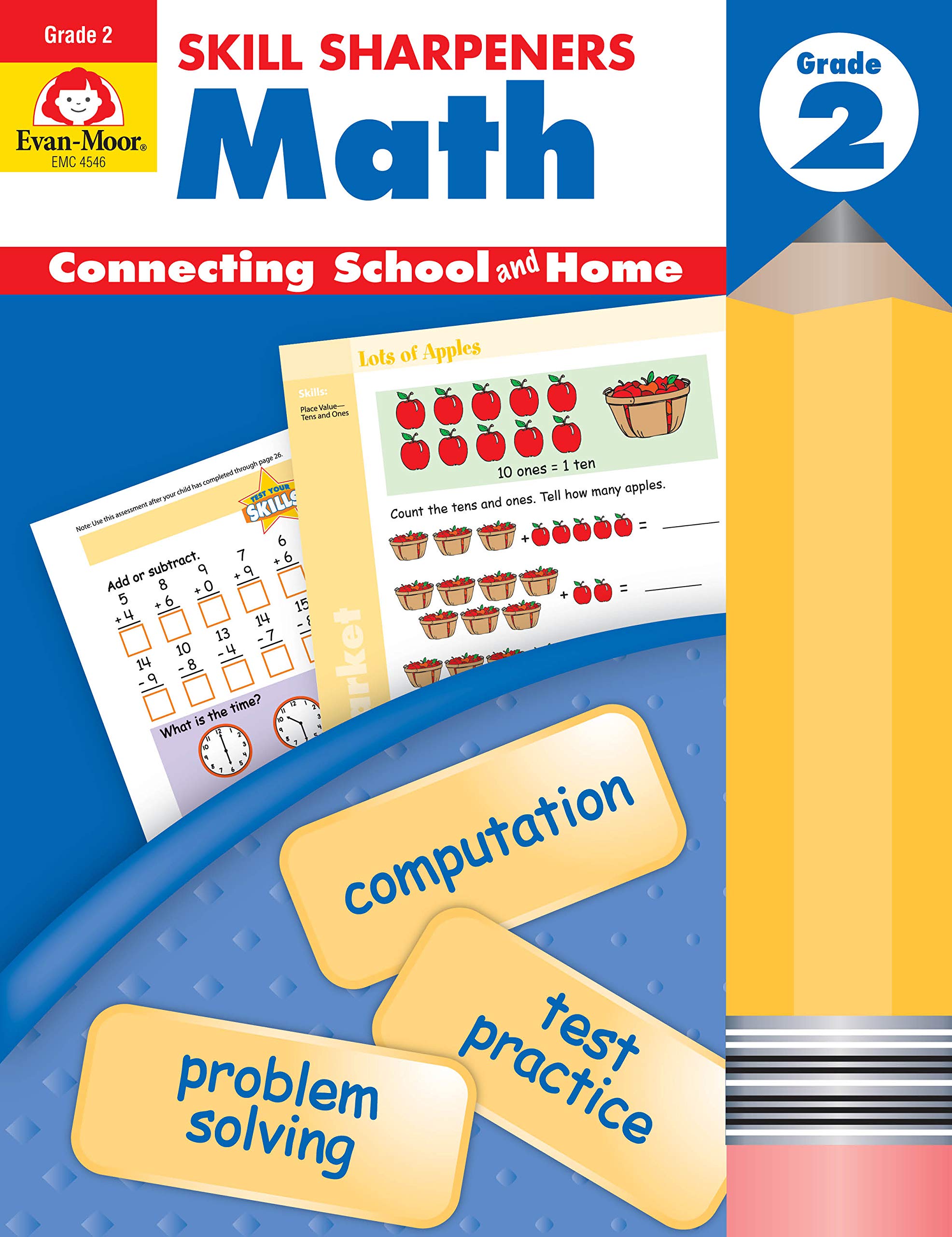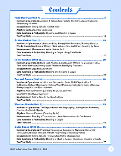 Common Core Top Pick for Math Measurement and Data Numbers and Operations in Base 10 Geometry Operations and Algebraic ThinkingView all Common Core Top Picks forMathSkill Sharpeners Math, Grade 2 provides practice for the following mathematics skills: read, write, and compare numbers to 1,000 addition and subtraction facts to 18 twodigit addition and subtraction with and without regrouping threedigit addition and subtraction without regrouping multiplication facts to 25 identify and continue patterns value of pennies, nickels, dimes, quarters, dollar bills solve word problems tell time to the hour and halfhour identify fractions1/2, 1/3, 1/4, 3/4, 2/3, 1/6, 1/8 read and create graphs measure to the nearest half inch geometrybasic shapes, symmetry, perimeter