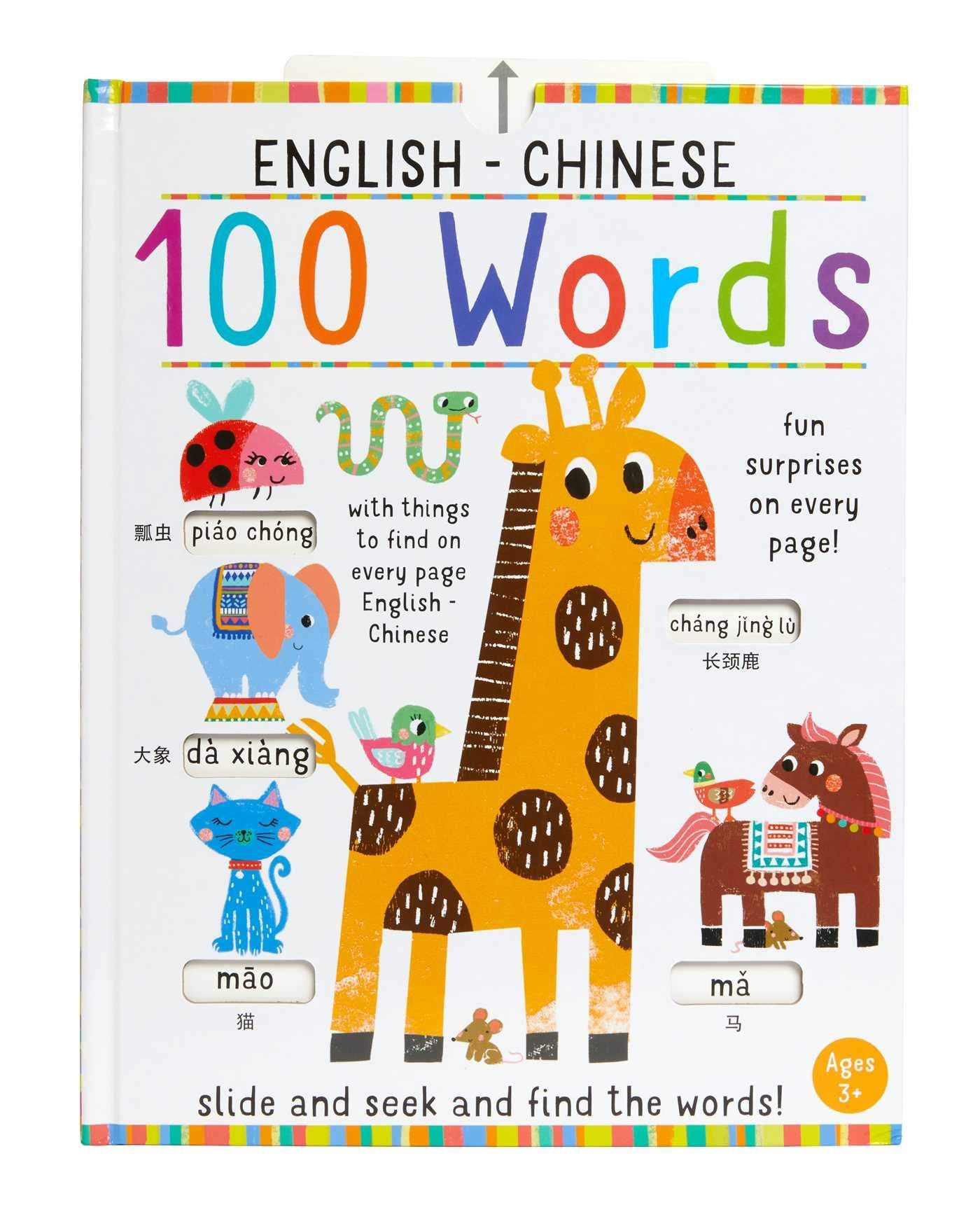 Play slide and seek to reveal 100 new words in both English and Mandarin Chinese with this larger format board book.With multiple tabs to pull and flaps to lift, countless surprises await young learners in Slide and Seek: 100 Words EnglishChinese. Each page of this larger format board book contains a single pull tab that reveals the English and Mandarin Chinese versions of a word. Colorful artwork brings the pages to life in entertaining and educational ways. Lifttheflaps add an extra level of engagement to this book that helps prereaders at the earliest stages of development.Every spread includes a visual puzzle!
