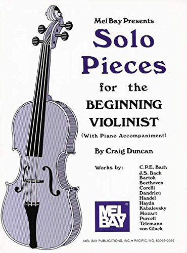 Teacher and recording artist Craig Duncan has penned yet another excellent solo collection for the violin student. These solos are well within the capabilities of the beginning violin student playing in first position. The compositions feature works by Bartok, Purcell, Haydn, von Gluck, Handel, Telemann, Corelli, Kabalevsky, Beethoven, Mozart, C.P.E. Bach, J.S. Bach, and Dandrieu. Keyboard accompaniment is included. These pieces are excellent for recitals or contests, and can be used to teach important techniques. A separate 26page insert pullout part is included for the piano.