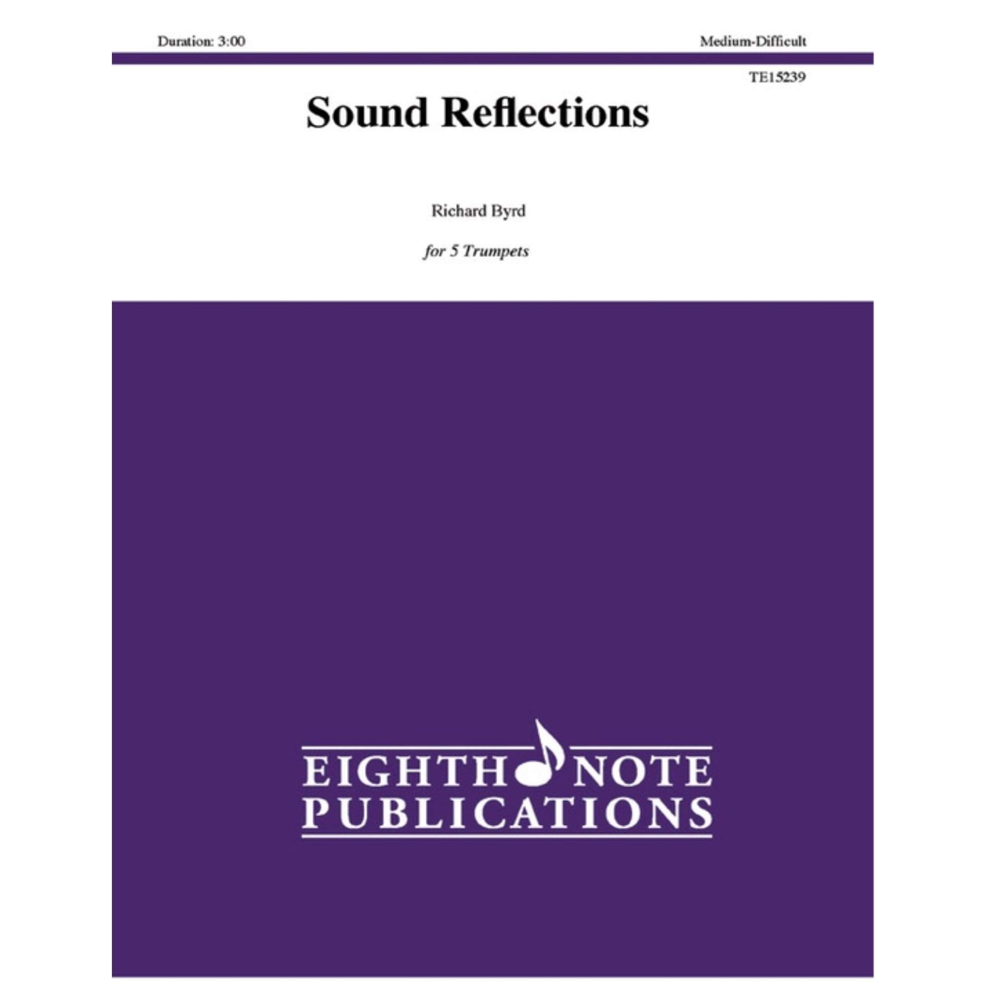 The musical material for Sound Reflections" was inspired after a trip to the Grand Canyon. The open voicings of quartal harmonies reflect the canyon's vast expanse. This work is fun to perform for five trumpets and enjoyable to hear, and is ideal for competitions, conference preludes and engaging concert programs."