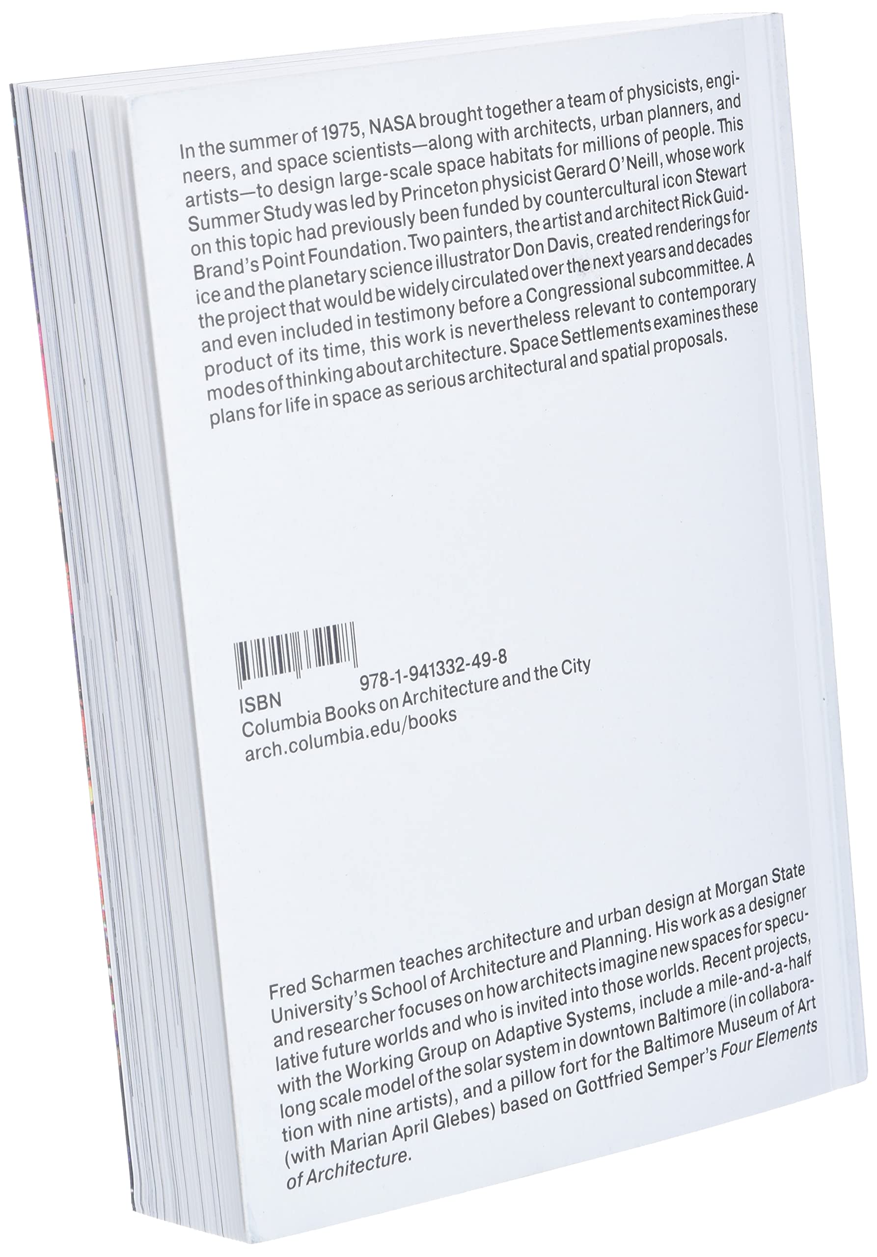 In the summer of 1975, NASA brought together a team of physicists, engineers, and space scientistsalong with architects, urban planners, and artiststo design largescale space habitats for millions of people. This Summer Study was led by Princeton physicist Gerard ONeill, whose work on this topic had previously been funded by countercultural icon Stewart Brands Point Foundation. Two painters, the artist and architect Rick Guidice and the planetary science illustrator Don Davis, created renderings for the project that would be widely circulated over the next years and decades and even included in testimony before a Congressional subcommittee. A product of its time, this work is nevertheless relevant to contemporary modes of thinking about architecture. Space Settlements examines these plans for life in space as serious architectural and spatial proposals.