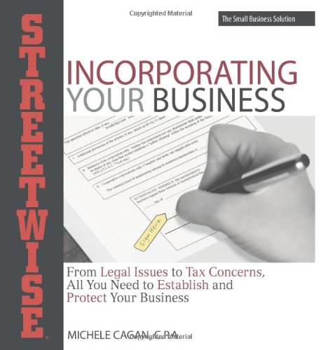 Incorporating your business can provide numerous legal and financial advantages it also has longterm ramifications on how you manage and structure your organization. Streetwise Incorporating Your Business will not only educate you about the benefits of incorporating your business, but will also help you determine which corporate form and structure will be the most advantageous for your personal circumstances.You will learn the details of many critical business issues, including: Whether an S corporation or a C corporation is better for your organization Which state and federal regulations will affect your corporation How to avoid hidden costs associated with incorporating your business Tax planning strategies and required accounting practices Streetwise Incorporating Your Business will lead you through each decision, from choosing the best location to incorporate, deciding which information to include in official government filings, and learning how to organize board and shareholders meetings.