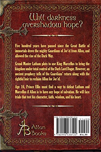 Will Darkness Overshadow Hope?Five hundred years have passed since the Great Battle of immortals drove the mighty Guardians of Jor'el from Allon, and allowed the rise of the Dark Way.Grand Master Latham plots to use King Marcellus to bring the kingdom under total control of the Dark Lord Dagar. However, an ancient prophecy tells of the Guardians' return along with the rightful heir to reclaim Allon for Jor'el.At age 16, Prince Ellis must find a way to defeat Latham and Dagar if Allon is to have any hope of salvation. He will face trials that test his character, faith, wisdom and ultimately, his heart.(*This 2nd edition is the author's version with 60 pages of new material and expanded scenes.)