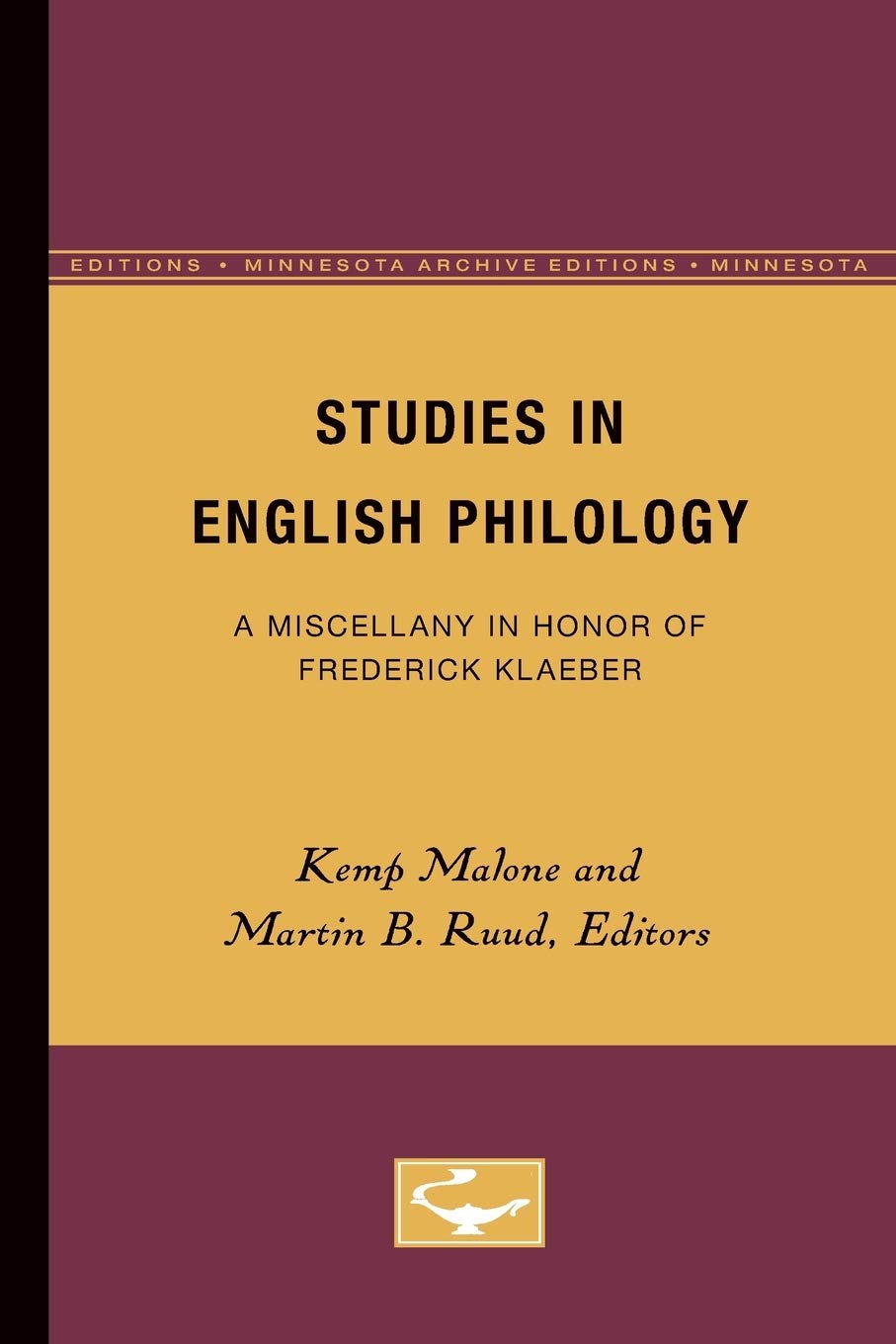 Studies in English Philology was first published in 1929. Minnesota Archive Editions uses digital technology to make longunavailable books once again accessible, and are published unaltered from the original University of Minnesota Press editions.