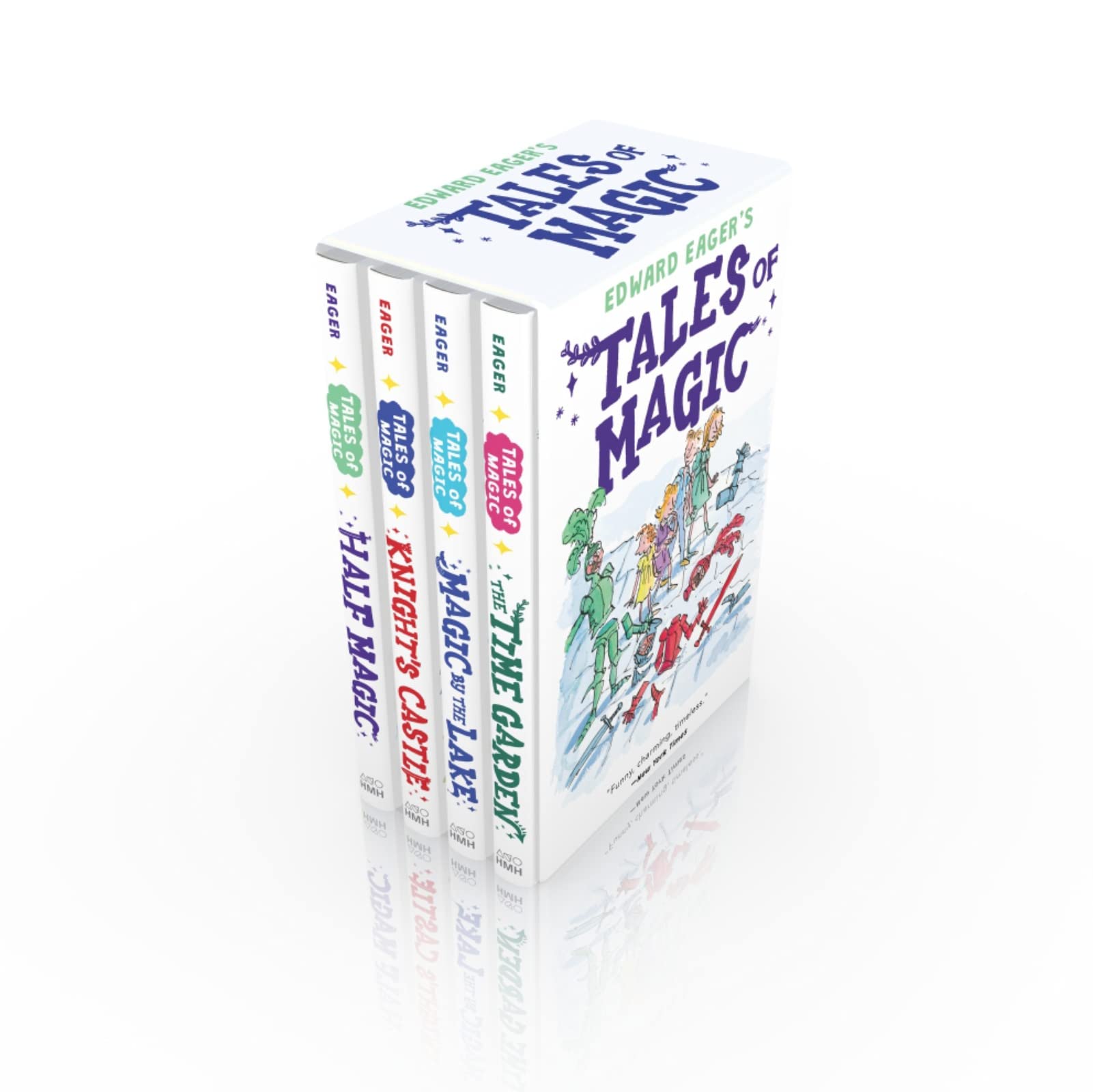 This giftready set includes the first four books in Edward Eager's classic Tales of Magic seriesThe four most popular storiesHalf Magic, Knight's Castle, Magic by the Lake, and The Time Gardenare ready for middle grade reading pleasure. This set is perfect for giftgiving and for introducing eager new readers to a whole world of wit and magic,This funny and gentle classic series is an enjoyable readaloud and also a strong choice for independent reading. For fans of such favorite series as The Penderwicks and The Vanderbeekers, the books were called 'truly magic in a reader's hands' by Jack Gantos, Newbery Medal winner for Dead End in Norvelt.