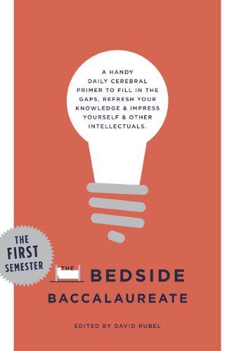 In the dark about black holes? Need to brush up on your Impressionists? Skip the line at the registrar and curl up withThe Bedside Baccalaureate. Each volume contains classes that rotate in groups of five, just as a typical college semester's schedule would. There are four rotations, or 20 courses, and every course consists of 18 singlepage, entertaining entrieseasytodigest short bites of core information that help you build a solid intellectual base in history, philosophy, economics, English and comparative literature, classics, art history, environmental science, mathematics and engineering, physical sciences, and social science.