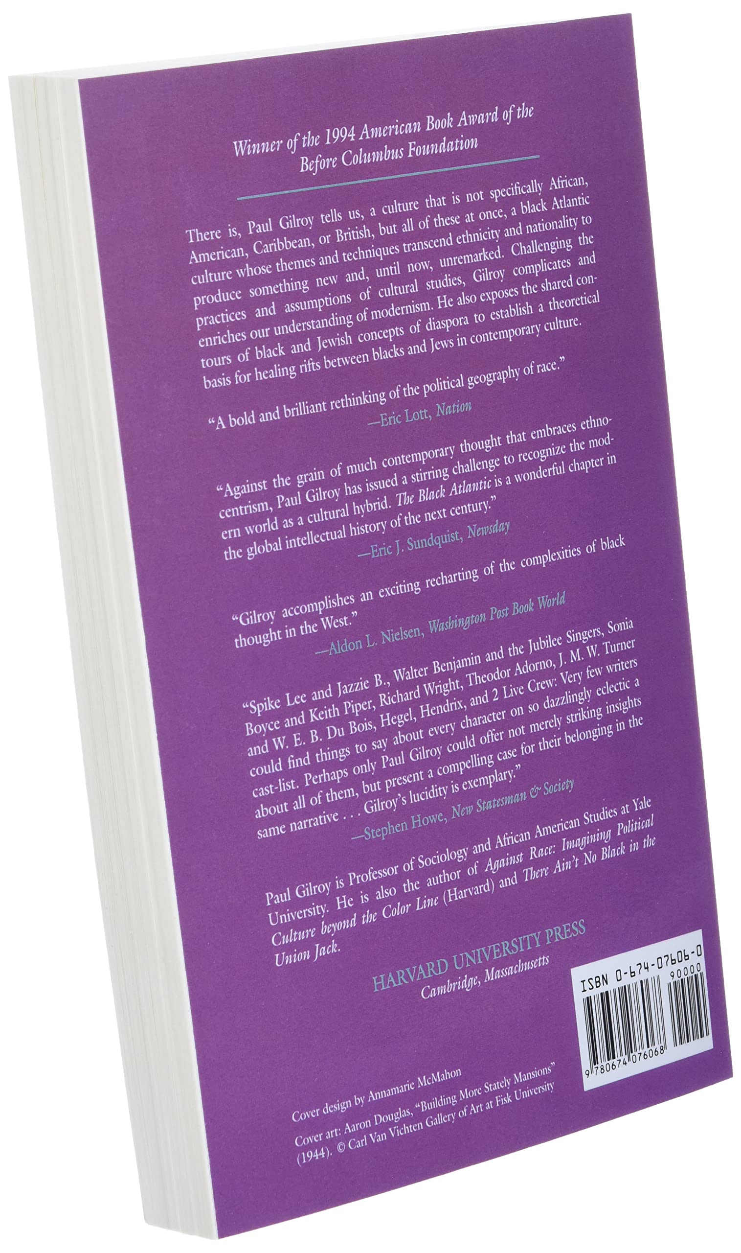 Afrocentrism. Eurocentrism. Caribbean Studies. British Studies. To the forces of cultural nationalism hunkered down in their camps, this bold hook sounds a liberating call. There is, Paul Gilroy tells us, a culture that is not specifically African, American, Caribbean, or British, but all of these at once, a black Atlantic culture whose themes and techniques transcend ethnicity and nationality to produce something new and, until now, unremarked. Challenging the practices and assumptions of cultural studies, The Black Atlantic also complicates and enriches our understanding of modernism.Debates about postmodernism have cast an unfashionable pall over questions of historical periodization. Gilroy bucks this trend by arguing that the development of black culture in the Americas arid Europe is a historical experience which can be called modern for a number of clear and specific reasons. For Hegel, the dialectic of master and slave was integral to modernity, and Gilroy considers the implications of this idea for a transatlantic culture. In search of a poetics reflecting the politics and history of this culture, he takes us on a transatlantic tour of the music that, for centuries, has transmitted racial messages and feeling around the world, from the Jubilee Singers in the nineteenth century to Jimi Hendrix to rap. He also explores this internationalism as it is manifested in black writing from the double consciousness of W. E. B. Du Bois to the double vision of Richard Wright to the compelling voice of Toni Morrison.In a final tour de force, Gilroy exposes the shared contours of black and Jewish concepts of diaspora in order both to establish a theoretical basis for healing rifts between blacks and Jews in contemporary culture and to further define the central theme of his book: that blacks have shaped a nationalism, if not a nation, within the shared culture of the black Atlantic.