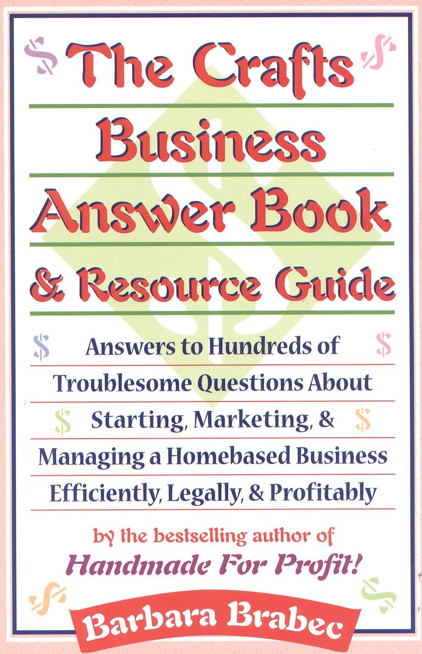 Have people told you that you should sell your craft items? Are you ready to take the next step in your craft making hobby and sell your items, and actually make money? Then this book is for you. It is written by the well known homebased business writer Barbara Brabec. Here is what the book addresses: **Do I really need a separate checking account for a small homebased business? **What local, state, and federal laws and regulations apply to craft sellers? **What kind of books do I have to keep to meet IRS requirements? **What homebusiness expenses can I deduct on my Schedule C form? **What are my chances of getting a loan for my homebased business? **How can I collect on bad checks and unpaid invoices? **How much will my sales increase if I offer charge card services to my customers? **How can I tell if my prices are right for the wholesale markets I want to reach? **Is the Internet an effective marketing outlet for artists and craft sellers? **How do craft malls operate and what costs are involved in this type of selling? **What is the difference between a copyright, patent, and trademark? **Is it okay to make items for sale from patterns found in magazines? **What is the profit potential of a crafts or homebusiness newsletter? **How can I get my craft or needlework designs and projects published? There is even a chapter on resources that includes a bibliography of crafts books and magazines, organizations, governmental agencies, and suppliers.