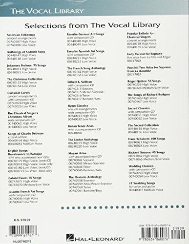 (Vocal Collection). This edition presents 65 diverse songs by major composers of German art song, or lieder, and is the perfect onevolume lieder source for voice students. All the songs are new Vocal Library editions. Historical notes about the relevant history and background of each song are included, as are linebyline translations for study. Contents: BEETHOVEN: Der Kuss * Ich liebe dich * Sehnsucht * BRAHMS: Dein blaues Auge * Die Mainacht * Immer leiser wird mein Schlummer * Meine Liebe ist grun * Sonntag * Standchen * Vergebliches Standchen * Wie Melodien zieht es mir * Ophelia Lieder * FRANZ: Aus meinen grossen Schmerzen * Er ist gekommen * Fur Musik * Im Herbst * MAHLER: Fruhlingsmorgen * Liebst du um Schonheit * Lob des hohen Verstandes * Wer hat dies Liedlein erdacht? * ALMA MAHLER: Laue Sommernacht * FANNY MENDELSSOHN: Italien * MENDELSSOHN: Der Blumenstrauss * Neue Liebe * MOZART: Abendempfindung * Als Luise die Briefe ihres ungetreuen Liebhabers verbrannte * Das Veilchen * SCHUBERT: An die Musik * Auf dem Wasser zu singen * Der Musensohn * Die Forelle * Du bist die Ruh * Gretchen am Spinnrade * Lachen und Weinen * Nacht und Traume * Rastlose Liebe * Standchen * CLARA SCHUMANN: Liebst du um Schonheit * SCHUMANN: Der Nussbaum * Die Lotosblume * Du bist wie eine Blume * Du Ring an meinen Finger * Ich grolle nicht * In der Fremde * Intermezzo * Waldesgesprach * Widmung * RICHARD STRAUSS: Allerseelen * Breit' uber mein Haupt * Die Nacht * Du meines Herzens Kronelein * Ich trage mein Minne * Morgen! Zueignung * WOLF: Ankreons Grab * Auch kleine Dinge *Auf ein altes Bild * Der Musikant * In dem Schatten meiner Locken * Lebe wohl * Verborgenheit