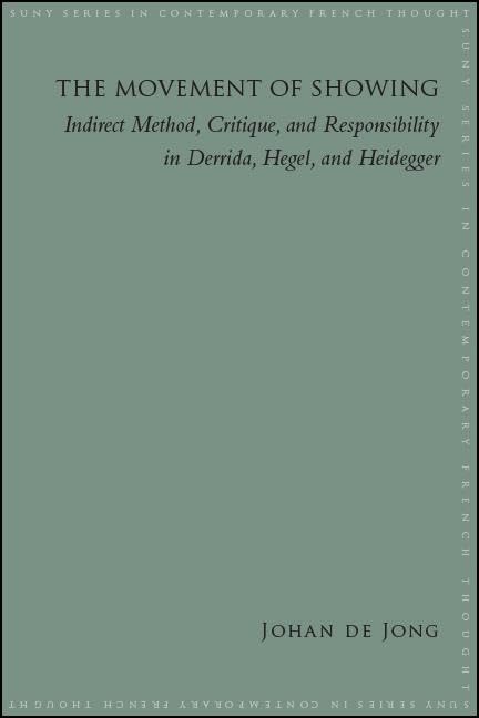 This book explores the idea shared by Derrida, Hegel, and Heidegger that the value of their thought is not found in its results or conclusions, but in its "movement." All three describe the heart of their work in terms of a pathway, development, or movement that seems to deprive their thought of a solid ground. Johan de Jong argues that this is a structural vulnerability that is the source of its value, tracing Derrida's indirect method from his early to later works, and critically considering his engagements with Hegel and Heidegger. De Jong's analysis locates an affinity among Hegel, Heidegger, and Derrida in a shared distrust of externality and, against the grain of some Levinasian commentaries, argues that Derrida's indirectness results in an ethics of complicity. The Movement of Showing answers a central question that many polemics about continental philosophy and postmodernism revolve around, namely: with which methods does one philosophize responsibly? It shows the difference between critique and polemics, and why simply taking up a position for or against is insufficient in order to think responsibly.