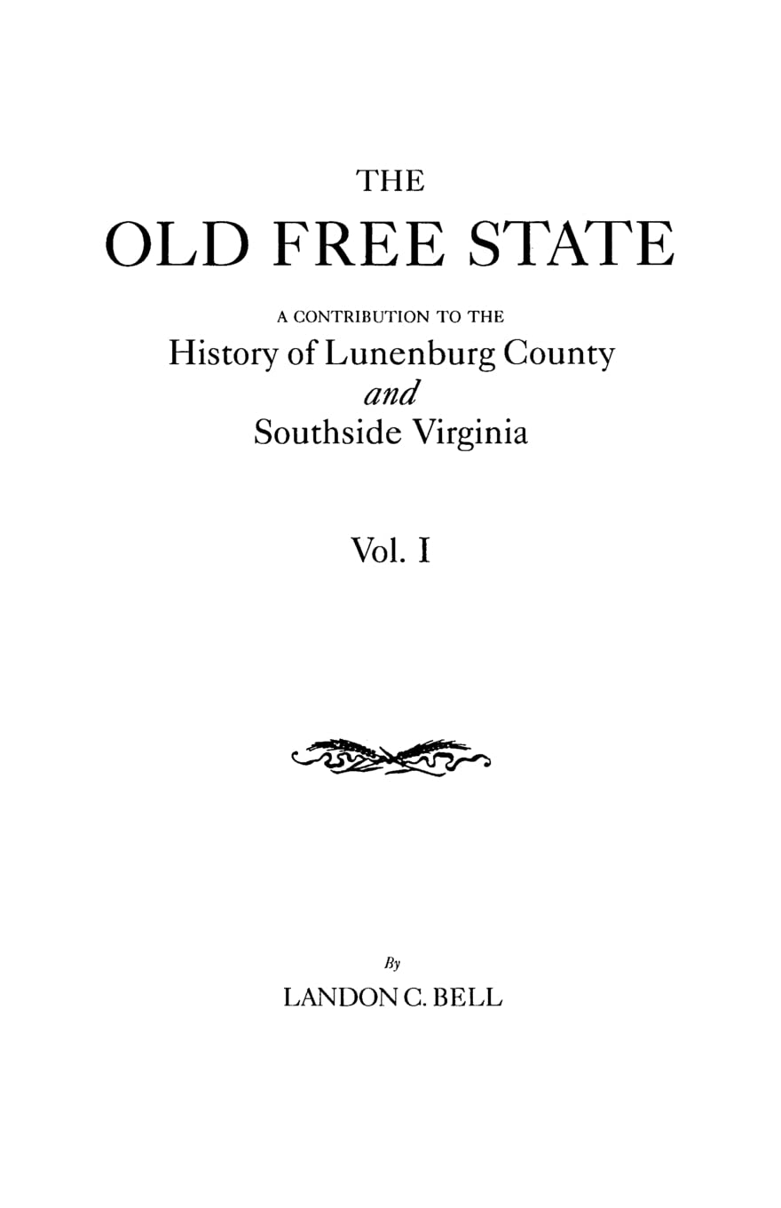 The Old Free State: A Contribution to the History of Lunenburg County and Southside Virginia. in Two Volumes. Volume I,Used