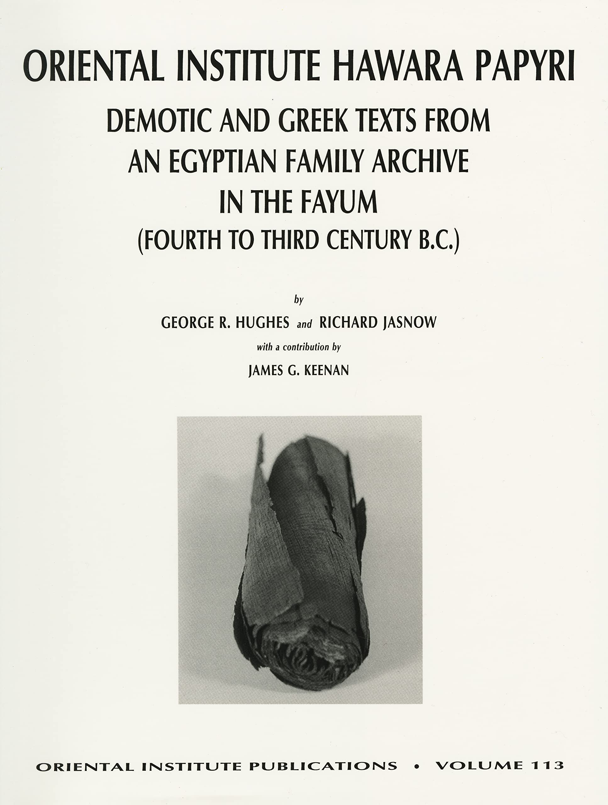 The papyri published here, chiefly in the collection of the Oriental Institute Museum, comprise part of a large family archive from the town of Hawara in the Egyptian Fayum. Written in Demotic and Greek, the documents (annuity contracts, donations, sales, mortgage agreements, loan repayments) are an excellent source of information about the Egypt of the fourth to third century b.c. Professor George R. Hughes had worked on the ten Oriental Institute Hawara papyri for a number of years, but sadly, it was not possible for him to finish the manuscript before his death in December 1992; he did, however, prepare preliminary transliterations and translations of the papyri, including the Rendell Papyrus published in the Appendix. Discussions, commentaries, and glossaries are included. Richard Jasnow completed the manuscript with the assistance of James Keenan, who prepared the Greek texts. The book is of interest to Egyptologists, Hellenists, and all of those concerned with the economic and social history of the Late period in Egypt.