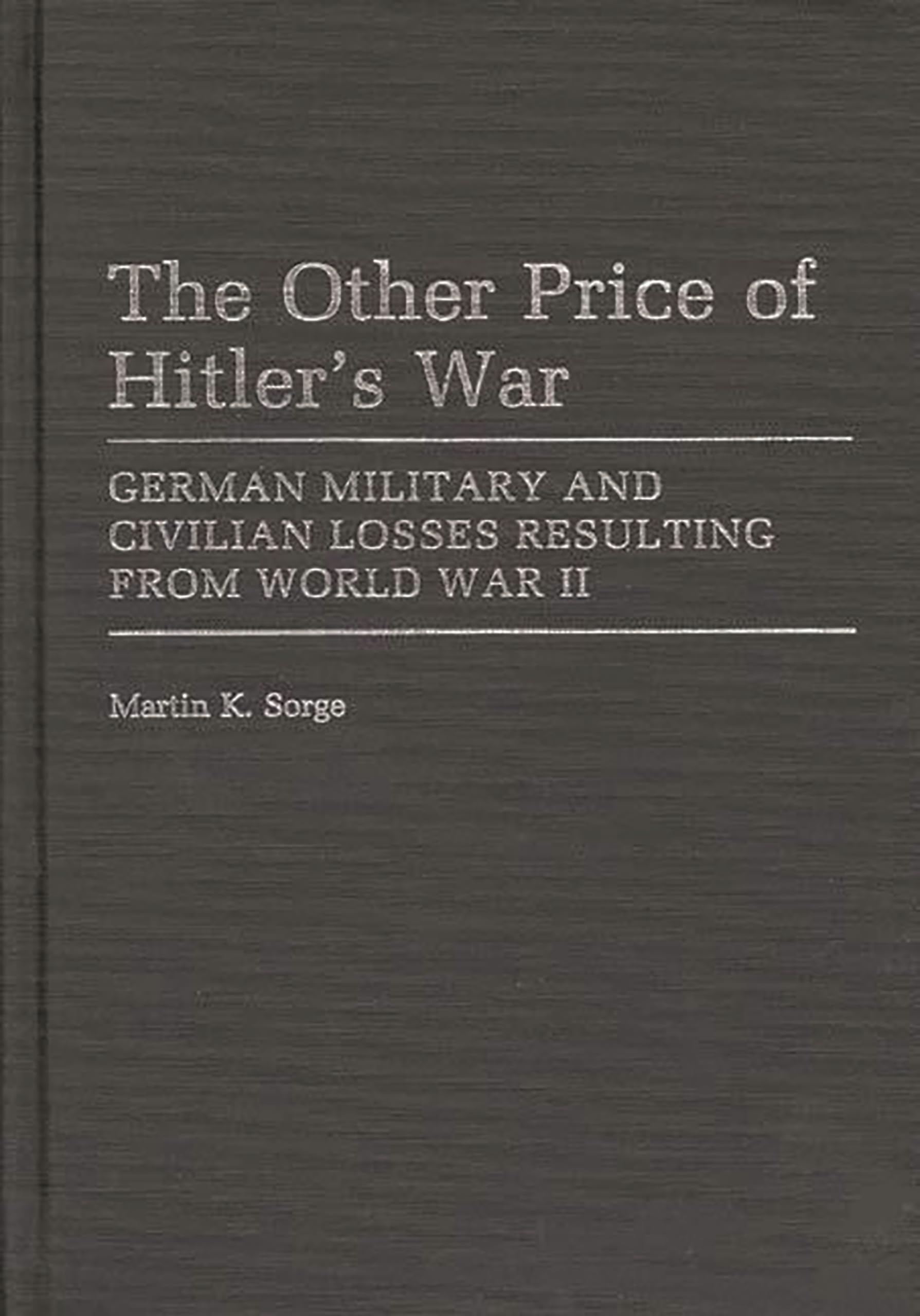 The Other Price Of Hitler'S German Military And Civilian Losses Resulting From World War Ii (Contributions To The Study Of World History #55) [ The Other Price Of Hitler'S German Military And Civilian Losses Resulting From World War Ii (Contributions To The Study Of World History #55) By Sorge, Martin K ( Author ) Hardcover Jul 1986 ] Hardcover Jul 23 1986