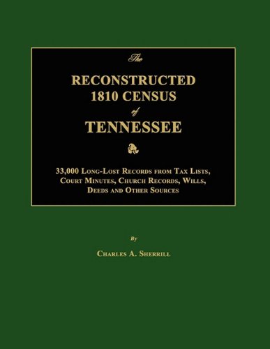 Substitute for the lost 1810 Tennessee Census, abstracted from a wide range of records from 18091811. Many entries include extra information about women, children, free blacks/slaves. Cites name, county and original source record, and any notes. 33,000 LongLost Records from Tax Lists, Court Minutes, Church Records, Wills, Deeds, and Other Sources.