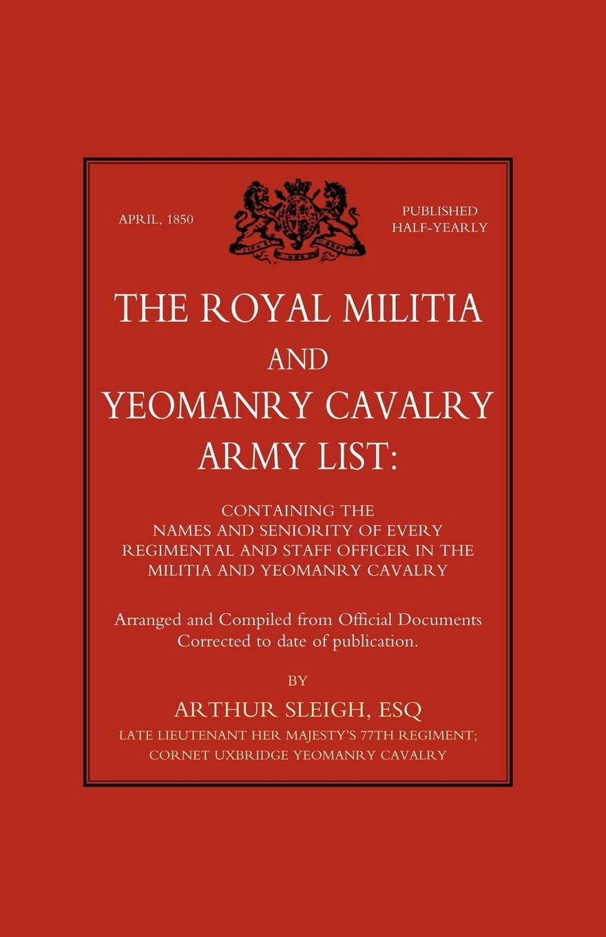 Subtitles to this historical publication amplify the contents. It contains the names and ranks of every regimental and staff officer in the Militia and Yeomanry Cavalry, designating whether Lords or Deputy Lieutenants of Counties, MPs or JPs, indicating those who have held commissions in the Regular Army, and detailing the country seats, parks and domains of the landed gentry where appropriate. Wonderful stuff! The Militia Regiments are arranged in seniority of number, the Yeomanry Regiments are shown alphabetically. In the introduction we are given a brief history of the Militia and of the Yeomanry with an abstract of the Militia Acts and Regulations for the Yeomanry Cavalry. Finally there is an index to all officers names, listed alphabetically under either Yeomanry or Militia.