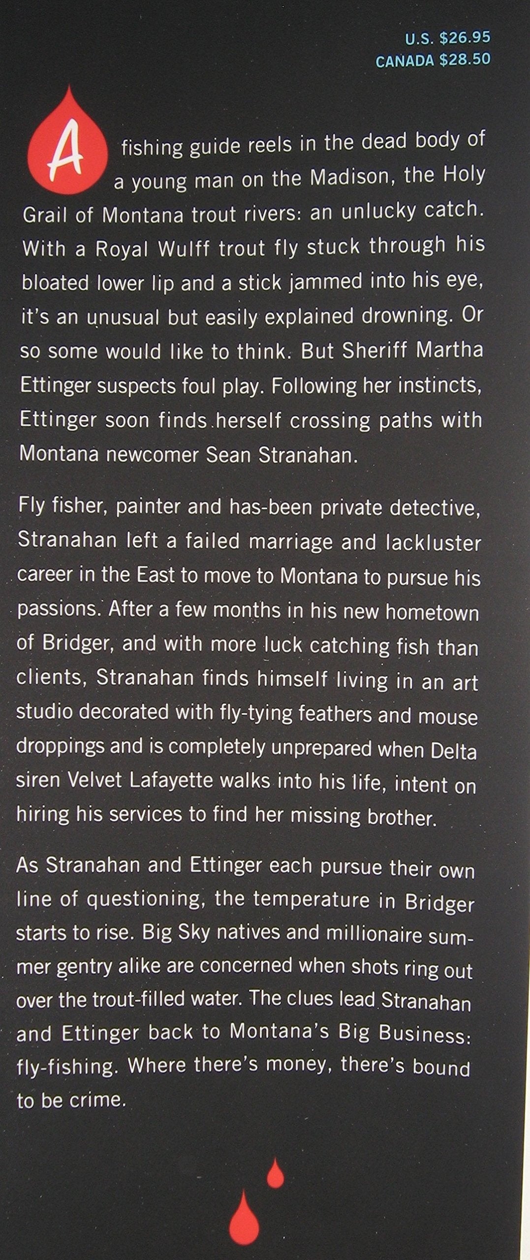 The first novel in the clever and fastpaced Sean Stranahan Mystery Series.When a fishing guide reels in the body of a young man on the Madison, the Holy Grail of Montana trout rivers, Sheriff Martha Ettinger suspects foul play. It's not just the stick jammed into the man's eye that draws her attention; it's the Royal Wulff trout fly stuck in his bloated lower lip. Following her instincts, Ettinger soon finds herself crossing paths with Montana newcomer Sean Stranahan.Fly fisher, painter, and hasbeen private detective, Stranahan left a failed marriage and lackluster career to drive to Montana, where he lives in an art studio decorated with flytying feathers and mouse droppings. With more luck catching fish than clients, Stranahan is completely captivated when Southern siren Velvet Lafayette walks into his life, intent on hiring his services to find her missing brother. The clues lead Stranahan and Ettinger back to Montana's Big Business: fly fishing. Where there's money, there's bound to be crime.