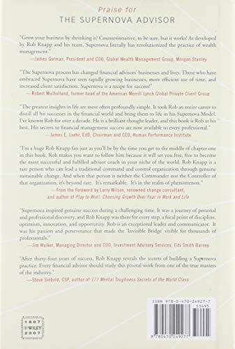 The Supernova Model Is A Client Service, Client Acquisition, And Practice Management Model That Drives An Explosive Acceleration In Revenue And Client Satisfaction By Capitalizing Upon The 80/20 Rule. First Implemented By Financial Advisors At Merrill Lynchunder The Leadership Of Author Rob Knappit Has Grown Increasingly Popular Within The Financial Services Industry. The Supernova Advisor Skillfully Outlines This Proven Model And Reveals How It Can Be Used To Create An Exceptional Experience For Your Clients, While Significantly Growing Your Business.