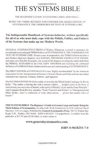 - Q: Who is the author of this book? A: The author of 'The Systems Bible' is John Gall, known for his contributions to systems theory and management.