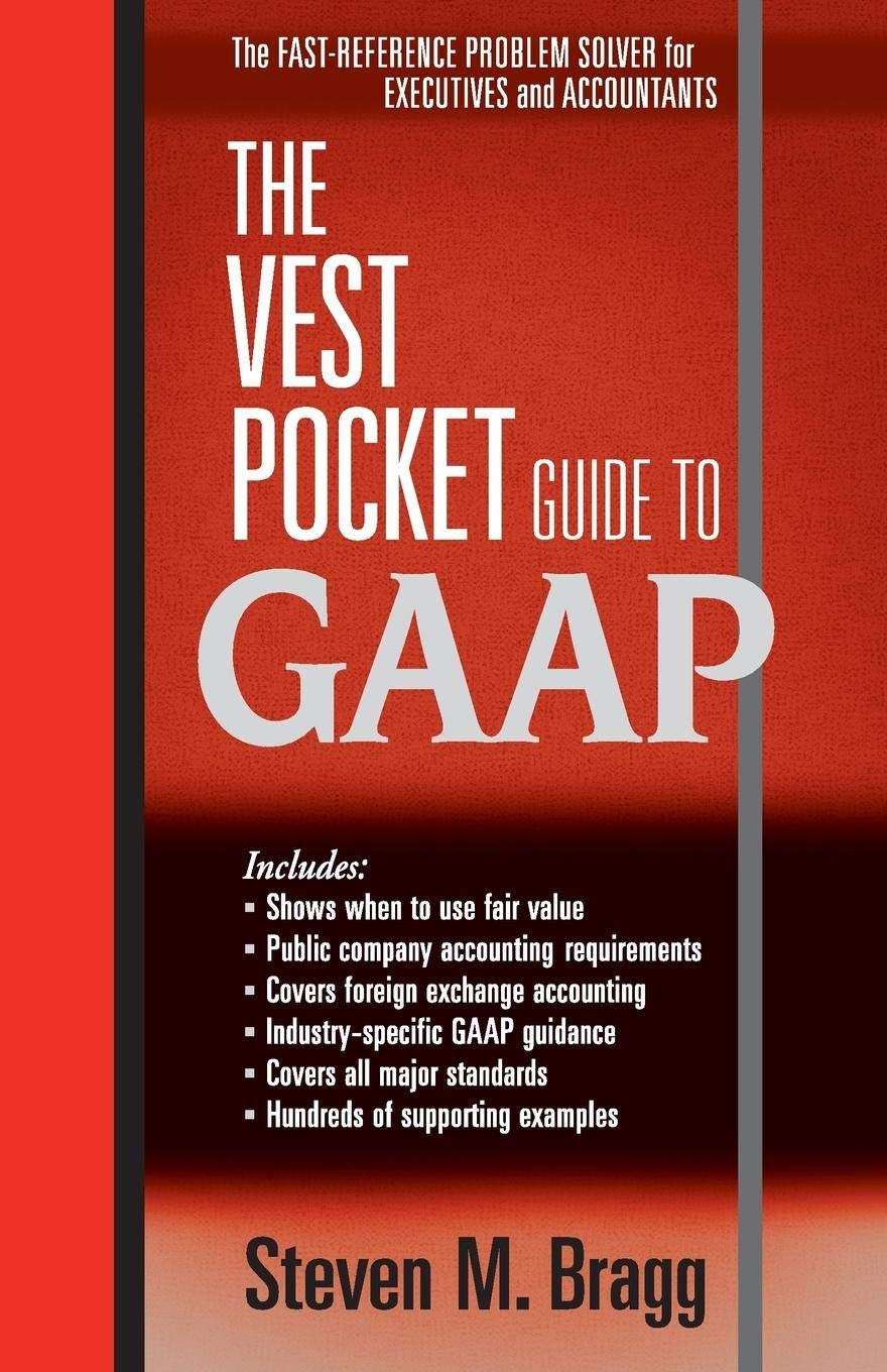 Quick answers to your GAAP questionsThe Vest Pocket Guide to GAAP is the handy pocket problemsolver that gives today's busy financial executives the GAAP advice they need in a quickreference format.Whether in public practice or private industry, professionals will always have this reliable reference tool at their fingertips because it easily goes anywhereto a client's office, on a business trip, or to an important lunch meeting. Provides succinct answers to common GAAP questions Easytouse Q & A format offers hundreds of explanations supported by a multitude of examples, tables, charts, and ratios Other titles by Bragg: Running an Effective Investor Relations Department: A Comprehensive Guide, Accounting Best Practices, Sixth Edition, and JustinTime Accounting, Third EditionConvenient and comprehensive, The Vest Pocket Guide to GAAP is the handy reference you'll turn to again and again for quick answers to your GAAP questions.