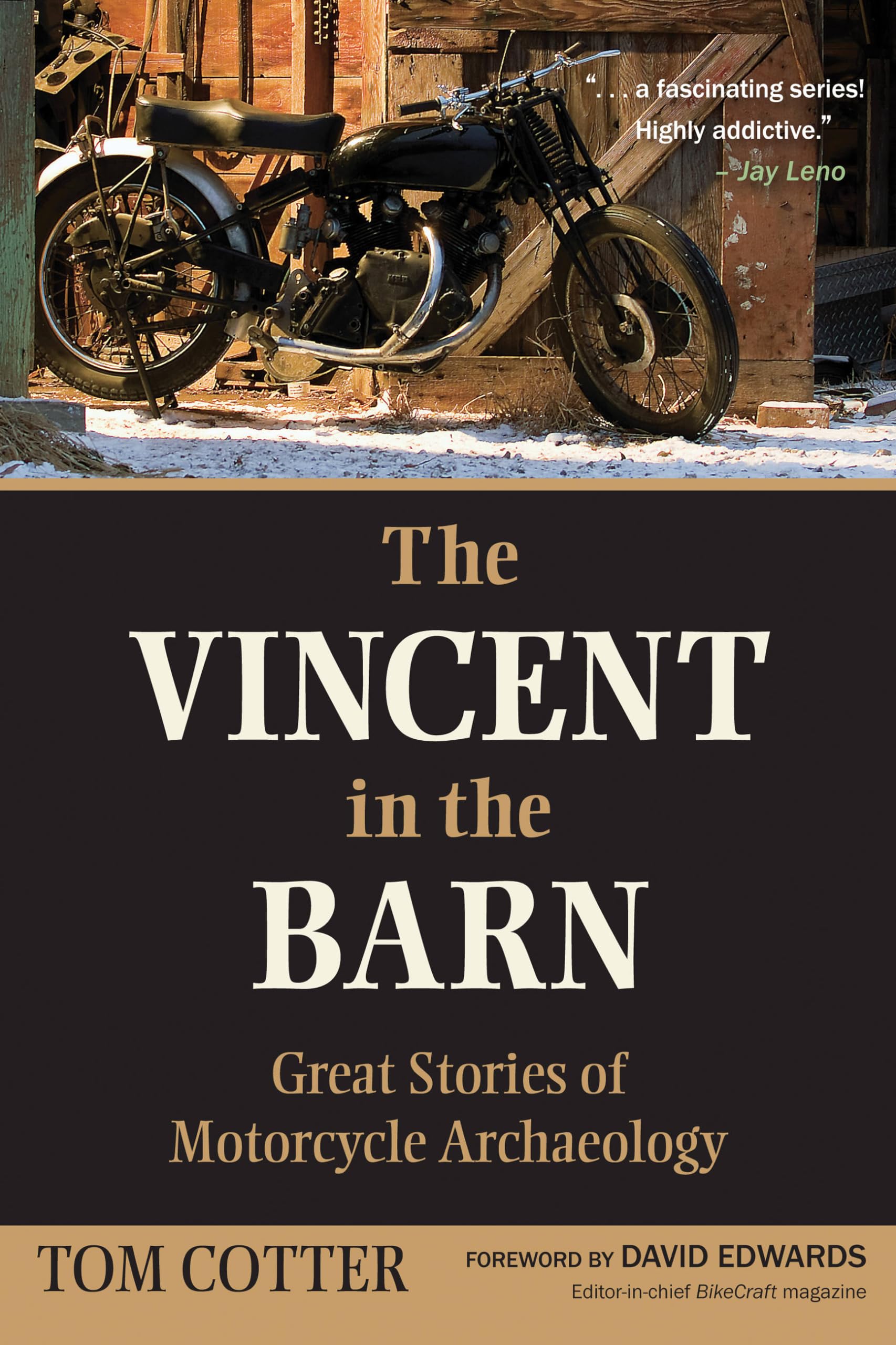 Its every motorcyclists dream. A friend or acquaintance says, You know, theres an old bike thats been sitting in this garage for years. The hunt is on. And rather than the usual worthless Hondazukimaha pile of hopeless oxidation, at the back of that barn you find a genuine classic, the motorcycle collectors dream.The Vincent in the Barn tells forty such storiestales of motorcycle hunting dreams come true. From Ducatis in basements to Vincents abandoned in sheds, Harleys in barns to Brit bikes moldering behind urban garages, these are the stories that fuel every motorcyclists fantasies. The only difference? Theyre true.See Tom Cotter, author of Motorbooks In the Barn series, interviewed by Jay Leno on JayLenosGarage.com: http://www.jaylenosgarage.com/video/jaysbookclubthehemiinthebarn/1237422/