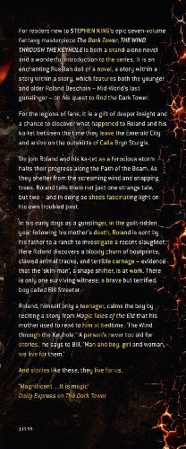 Stephen King returns to the rich landscape of MidWorld, the spectacular territory of the Dark Tower fantasy saga that stands as his most beguiling achievement. Roland Deschain and his katetJake, Susannah, Eddie, and Oy, the billybumblerencounter a ferocious storm just after crossing the River Whye on their way to the Outer Baronies. As they shelter from the howling gale, Roland tells his friends not just one strange story but two . . . and in so doing, casts new light on his own troubled past. In his early days as a gunslinger, in the guiltridden year following his mothers death, Roland is sent by his father to investigate evidence of a murderous shapeshifter, a skinman preying upon the population around Debaria. Roland takes charge of Bill Streeter, the brave but terrified boy who is the sole surviving witness to the beasts most recent slaughter. Only a teenager himself, Roland calms the boy and prepares him for the following days trials by reciting a story from the Magic Tales of the Eld that his mother often read to him at bedtime. A persons never too old for stories, Roland says to Bill. Man and boy, girl and woman, never too old. We live for them. And indeed, the tale that Roland unfolds, the legend of Tim Stoutheart, is a timeless treasure for all ages, a story that lives for us.King began the Dark Tower series in 1974; it gained momentum in the 1980s; and he brought it to a thrilling conclusion when the last three novels were published in 2003 and 2004. The Wind Through the Keyhole is sure to fascinate avid fans of the Dark Tower epic. But this novel also stands on its own for all readers, an enchanting and haunting journey to Rolands world and testimony to the power of Stephen Kings storytelling magic.~from first edition jacket