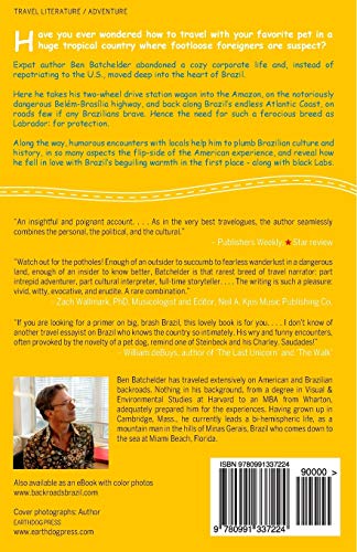 Have you ever wondered how to travel with your favorite pet in a huge tropical country where footloose foreigners are suspect?Author Ben Batchelder abandoned a cozy corporate career and, instead of returning to the U.S. like a normal repat, moved deep into the interior of Brazil.Here, he drives his twowheel drive station wagon into the Amazon, on the notoriously dangerous BelmBraslia highway, and back along Brazils endless Atlantic Coast, on roads few if any Brazilians brave. Hence the need for such a ferocious breed as Labrador: for protection.Along the way, humorous encounters with countless locals help him to plumb Brazilian culture and history, in many aspects the flipside of the American experience, and reveal how he fell in love with Brazils beguiling warmth in the first place along with black Labs.