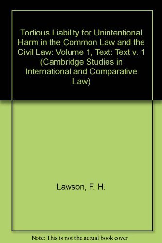 Tortious Liability for Unintentional Harm in the Common Law and the Civil Law: Volume 1, Text (Cambridge Studies in Internationa,Used