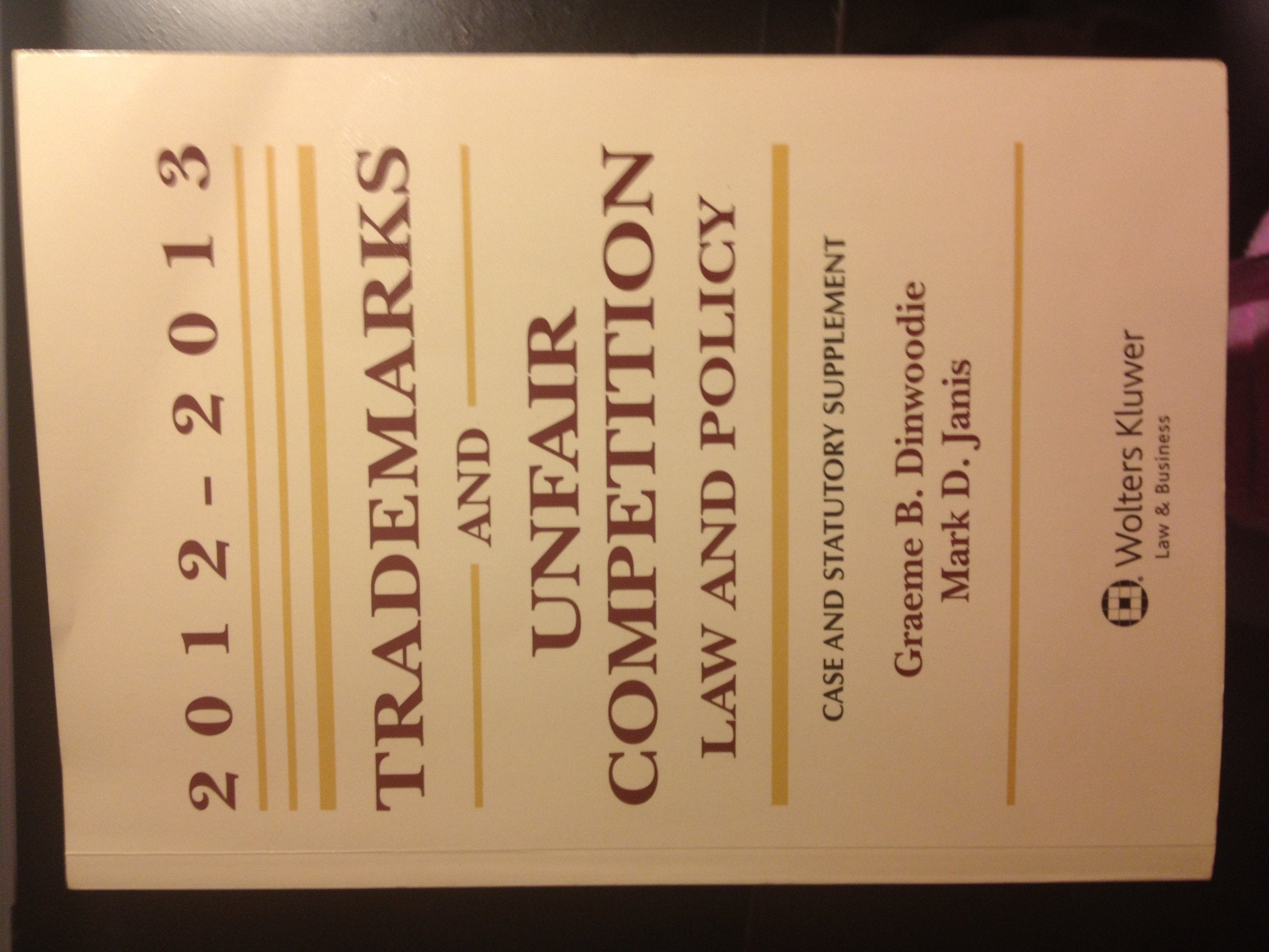 Trademarks & Unfair Competition: Law and Policy 20122013 Case and Statutory Supplement,New