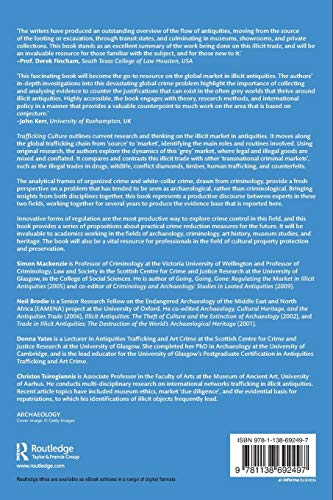 Trafficking Culture outlines current research and thinking on the illicit market in antiquities. It moves along the global trafficking chain from source to market, identifying the main roles and routines involved. Using original research, the authors explore the dynamics of this grey market, where legal and illegal goods are mixed and conflated. It compares and contrasts this illicit trade with other transnational criminal markets, such as the illegal trades in wildlife and diamonds.The analytical frames of organized crime and whitecollar crime, drawn from criminology, provide a fresh perspective on a problem that has tended to be seen as archaeological, rather than criminological. Bringing insights from both disciplines together, this book represents a productive discourse between experts in these two fields, working together for several years to produce the evidence base that is reported here.Innovative forms of regulation are the most productive way to explore crime control in this field, and this book provides a series of propositions about practical crime reduction measures for the future. It will be invaluable to academics working in the fields of archaeology, criminology, art history, museum studies, and heritage. The book will also be a vital resource for professionals in the field of cultural property protection and preservation.
