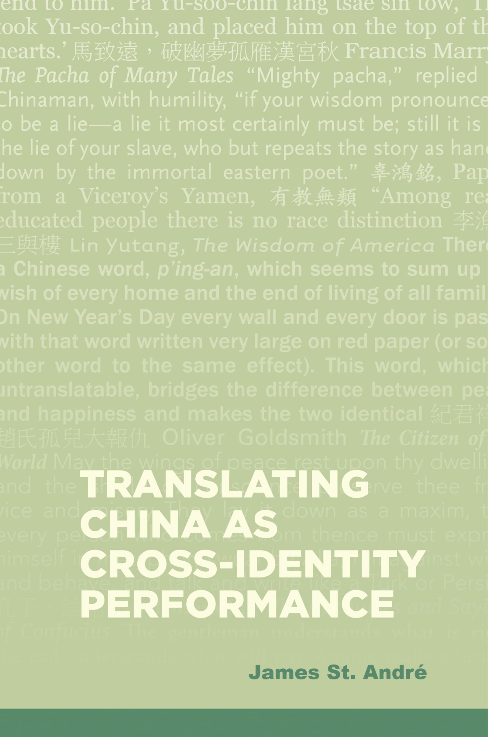 James St. Andr applies the perspective of crossidentity performance to the translation of a wide variety of Chinese texts into English and French from the eighteenth to the twentieth centuries. Drawing on scholarship in cultural studies, queer studies, and anthropology, the author argues that many crossidentity performance techniques, including blackface, passing, drag, mimicry, and masquerade, provide insights into the history of translation practice. He makes a strong case for situating translation in its historical, social, and cultural milieu, reading translated texts alongside a wide variety of other materials that helped shape the image of John Chinaman.A reading of the life and works of George Psalmanazar, whose crossidentity performance as a native of Formosa enlivened early eighteenthcentury salons, opens the volume and provides a bridge between the books theoretical framework and its examination of ChineseEuropean interactions. The core of the book consists of a chronological series of cases, each of which illustrates the use of a different type of crossidentity performance to better understand translation practice. St. Andr provides close readings of early pseudotranslations, including Maranas Turkish Spy (1691) and Goldsmiths Citizen of the World (1762), as well as adaptations of Hatchetts The Chinese Orphan (1741) and Voltaires Orphelin de la Chine (1756). Later chapters explore Daviss translation of Sorrows of Han (1829) and genuine translations of nonfictional material mainly by employees of the East India Company. The focus then shifts to oral/aural aspects of early translation practice in the nineteenth century using the concept of mimicry to examine interactions between Pidgin English and translation in the popular press. Finally, the work of two early modern Chinese translators, Gu Hongming and Lin Yutang, is examined as masquerade.Offering an original and innovative study of genres of writing that are traditionally examined in isolation, St. Andrs work provides a fascinating examination of the way three cultures interacted through the shifting encounters of fiction, translation, and nonfiction and in the process helped establish and shape the way Chinese were represented. The book represents a major contribution to translation studies, Chinese cultural studies, postcolonial studies, and gender criticism.