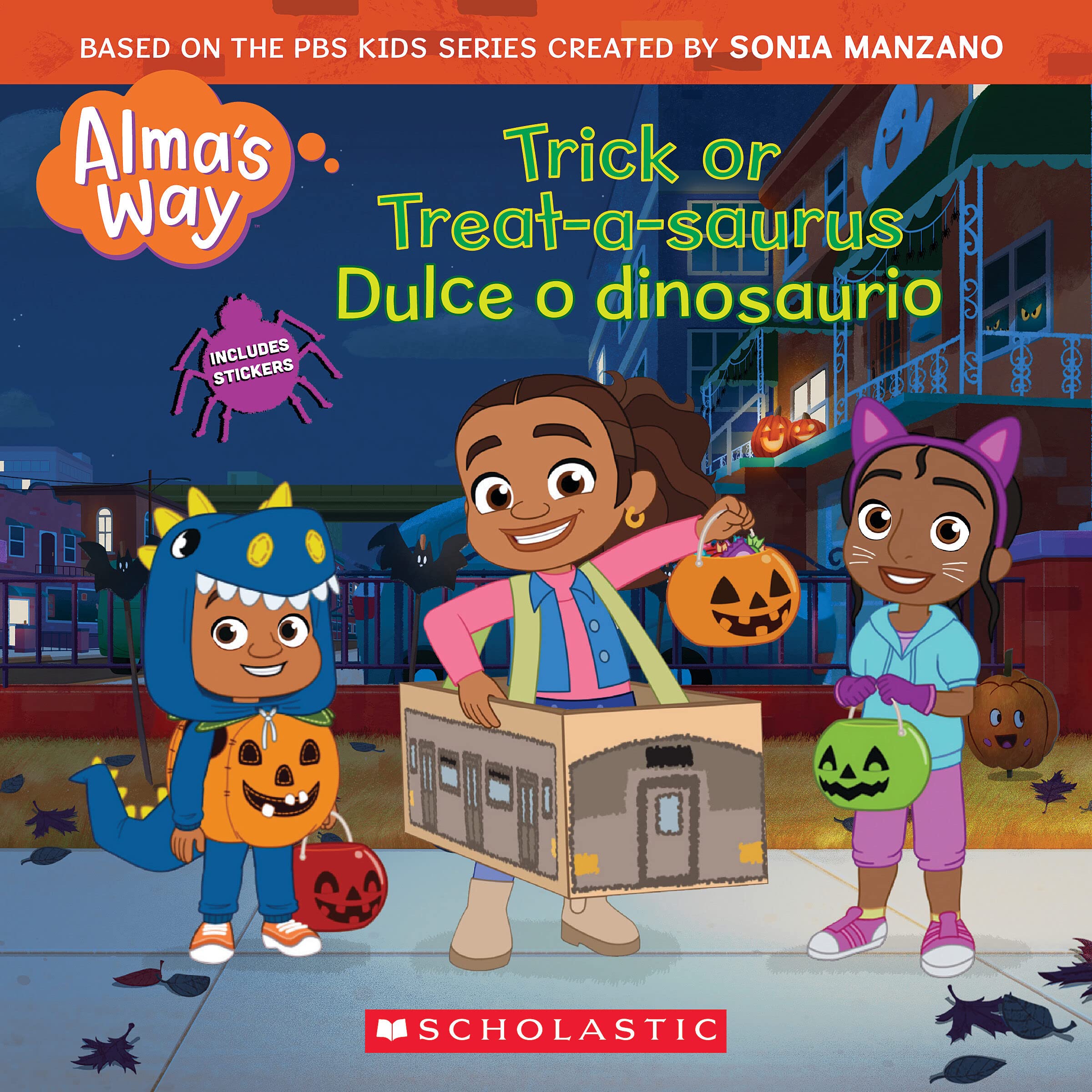 A heartwarming storybook based on the hit PBS show Almas Way, created by Emmy Awardwinning actor Sonia Manzano best known as Maria on Sesame Street.It's Halloween, and Alma and her little brother Junior can't wait to go trickortreating! But then Junior accidentally ruins his dinosaur costume. Can Alma help him turn his mistake into a frightnight delight? Includes stickers!