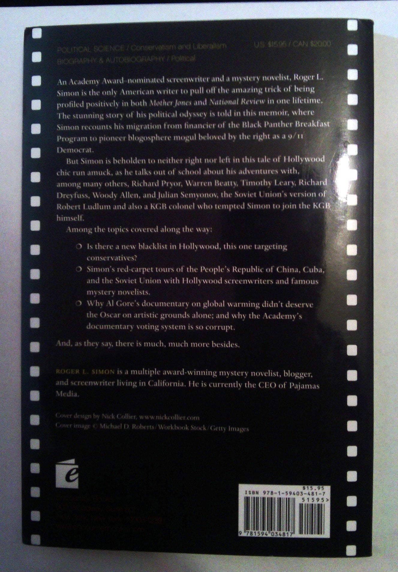 An Academy Awardnominated screenwriter and a mystery novelist, Roger L. Simon is the only American writer to pull off the amazing trick of being profiled positively in both Mother Jones and National Review in one lifetime. The stunning story of his political odyssey is told in this memoir, where Simon recounts his migration from financier of the Black Panther Breakfast Program to pioneer blogosphere mogul beloved by the right as a 9/11 Democrat.But Simon is beholden to neither right nor left in this tale of Hollywood chic run amuck, as he talks out of school about his adventures with, among many others, Richard Pryor, Warren Beatty, Timothy Leary, Richard Dreyfuss, Woody Allen, and Julian Semyonov, the Soviet Unions version of Robert Ludlum and also a KGB colonel who tempted Simon to join the KGB himself. Among the topics covered along the way:Is there a new blacklist in Hollywood, this one targeting conservatives?Simons redcarpet tours of the Peoples Republic of China, Cuba, and the Soviet Union with Hollywood screenwriters and famous mystery novelists.Why Al Gores documentary on global warming didnt deserve the Oscar on artistic grounds alone; and why the Academys voting system is so corrupt.And, as they say, there is much, much more besides.