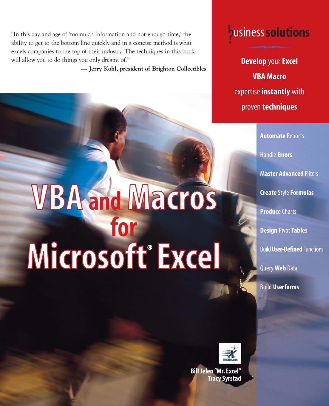 Everyone is looking for ways to save money these days. That can be hard to do for businesses that have complex needs, such as custom software applications. However, VBA and Macros for Microsoft Excel can teach you ways to customize preexisting software to meet your specific needs. A variety of topics are covered that are sure to give you a solid knowledge of the VBA language. Event programming, user forms, carts, pivot tables, multidimensional arrays and Web queries are just a few of the areas you will learn about in this book. Written by the principal behind the leading Excel Web site, www.mrexcel.com, this book is sure to save you time and money!
