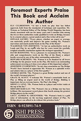 This is THE BOOK that every strong bridge player in the world has studied. Louis H. WATSON, the author of this book, was rated as one of the ten outstanding Bridge players in the world by all experts and authorities. Collier's Magazine of March 24,1934, ranked Mr. Watson as No. 4 player. Ely Culbertson considered Mr. Watson 'among two or three authorities really qualified to write on Bridge, because he is a master player, a great analyst and a fine writerall in one.' For many years Mr. Watson was closely associated with Mr. Culbertson as, Technical Editor of The Bridge World Magazine. As Bridge Editor of The New York Post, Mr. Watson wrote daily for this newspaper and associated newspapers. The Post said: 'Even more than for his skill, and his Bridge trailblazing, Mr. Watson deserves a special niche among Bridge masters. For he is a Bridge expert who can also write. He can make the most complex and critical Bridge situation as clear as simple honors.' MR. WATSON'S CHAMPIONSHIP RECORD In 1934 he won the TeamofFour Championship of the AllAmerican Whist League at Chicago with Samuel Fry, Jr., A. Mitchell Barnes and H. Hither Boscowitz; also won the Contract Pair Championship of the same tournament with Samuel Fry, Jr. In 1934 he won the Cavendish Club Individual Trophy, competing against a score of New York's master Bridge players. In 1933 he won the TeamofFour Championship of the AllAmerican Whist League with Samuel Fry, Jr., Walter Malowan and Charles Lochridge; also won the Contract Pair Championship of the same tournament with Samuel Fry, Jr. In 1932 he won the National TeamofFour Championship of the American Bridge League at Asbury Park with Oswald Jacoby, Michael T. Gottlieb and Theodore A. Lightner.