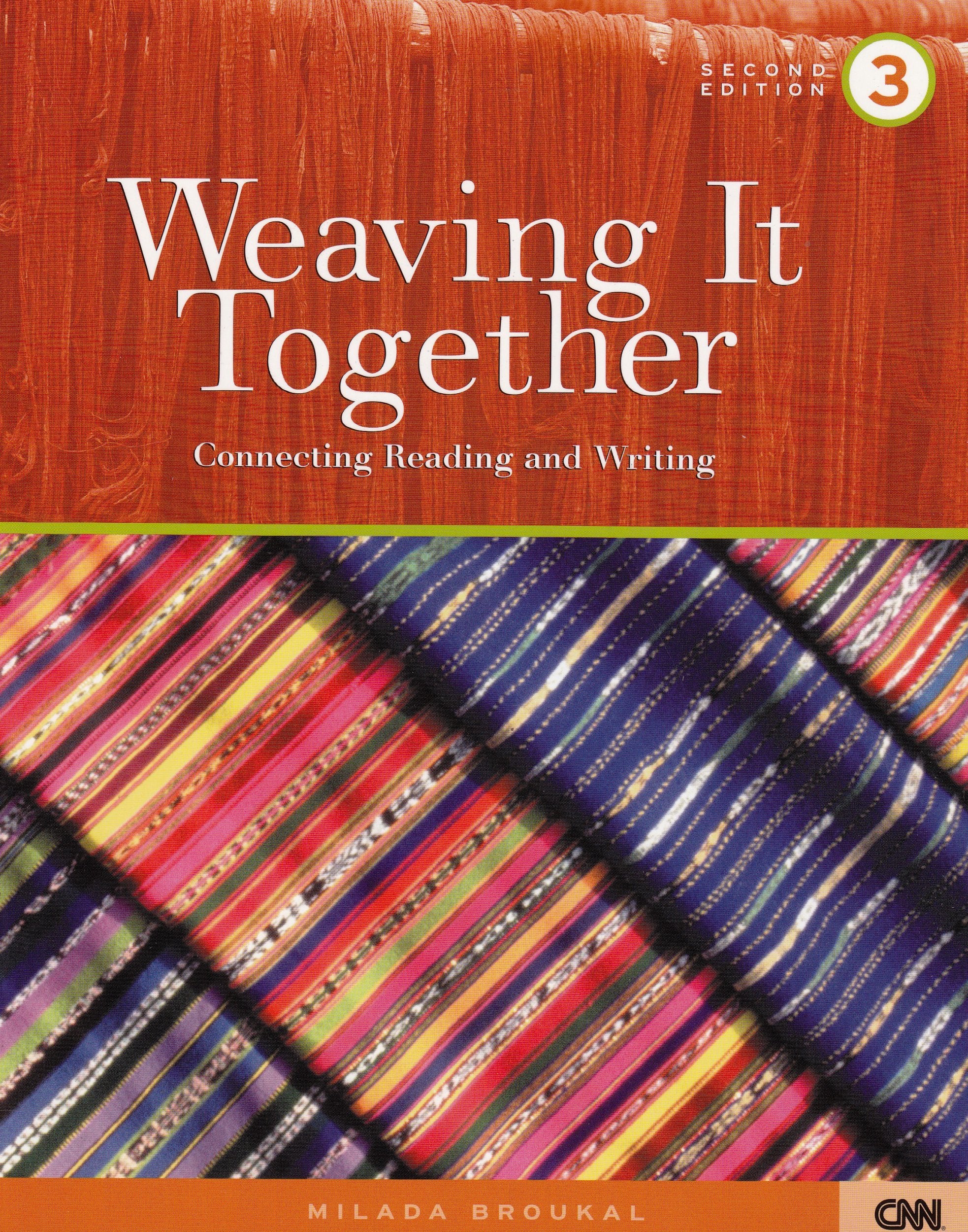 A favorite over a decade, WEAVING IT TOGETHER connects highinterest readings with clear writing activities to help students be more confident in their ability to understand and express ideas in English. Each level of WEAVING IT TOGETHER, 2/e contains eight thematically organized units, each of which includes two interrelated chapters. Robust activities, structure lessons, and plenty of writing practice help students develop their ideas clearly and with confidence.