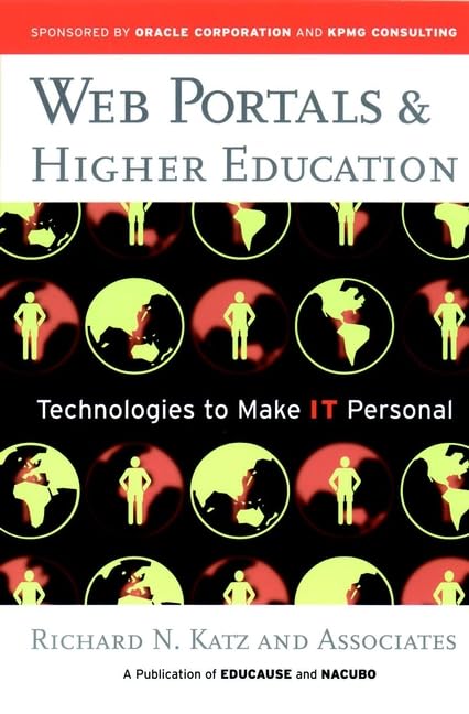 Product Description Written by Richard N. Katz and a stellar panel of experts in the field of educational technology in higher education, Web Portals and Higher Education examines a full range of issues that any educational institution must consider before beginning to develop a portal, including business challenges, organizational implications, policy choices, and technology concerns. Review "...it may be just the thing to leave on the president's chair before asking for funding." (University Business, May 2002) From the Back Cover As educational communities expand and diversify, colleges and universities are seeking ways to better serve the unique needs of all their constituents. Web portal technology allows educational institutions to integrate all the information and services used by their communities, and to present these in a seamless, selfservice web environment that offers a unique experience to every user.Written by Richard N. Katz and a stellar panel of experts in the field of educational technology in higher education, Web Portals and Higher Education examines a full range of issues that any educational institution must consider before beginning to develop a portal, including business challenges, organizational implications, policy choices, and technology concerns.A college or university may choose to license uPortala collaboratively developed technical framework for assembling and organizing college and university content and service channelsor it may decide either to license a commercial portal or to develop an inhouse solution and gain full control over the portal's design and maintenance. This resource will help guide an institution's decision about which approach is most appropriate for their situation. About the Author Richard N. Katz is vice president of EDUCAUSE and directs the EDUCAUSE Center for Applied Research. He is the author or editor of more than three dozen monographs, articles, and books on organizational change and information technology in higher education.