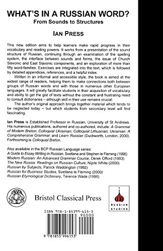 "What's in a Russian Word" works its way from a presentation of the sound structure of Russian, through an examination of the spelling system, the interface between sounds and forms, and the issue of the Church Slavonic and East Slavonic components of the Russian language, to an exploration of over sixty word families. The book should help one to make connections both between Russian words and those in numerous other European languages and between extensive groups of Russian words themselves, greatly facilitating learners at various stages in their acquisition of vocabulary and their ability to get the gist of texts without the constant and frustrating need to consult dictionaries, skill in the use of which none the less remains crucial.