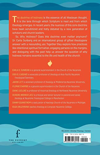 The doctrine of holiness is the essence of all Wesleyan thought. It is the lens through which Scripture is read and from which theology emerges. In recent years, the nuances of this core doctrine have been scrutinized and hotly debated by a new generation of scholars and church leaders.So, Why Holiness? Does this doctrine even matter anymore? Dr. Carla Sunberg and an international group of gifted theologians answer with a resounding yes. Together they explore how practices like intentional spiritual formation, engaging persons on the margins, and dialoguing with the past help us answer the question of why holiness remains essential to the life and health of the church.