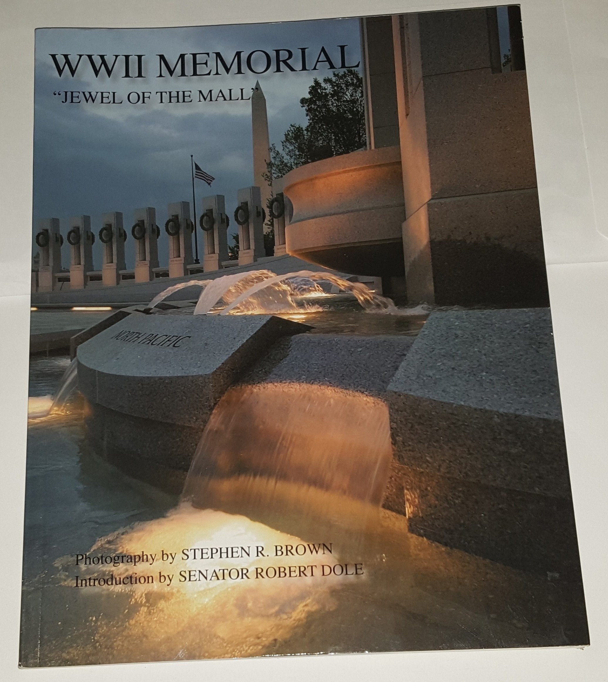 WWII Memorial: Jewel of the Mall is a fullcolor photographic book on the WWII Memorial with an introduction by Senator Robert Dole and photographs by renowned photographer Stephen R. Brown. The photographs are exclusive nevertobe duplicated images. Panoramic scenes of the new face of the Mall comprise seventyfive pages of the book while the rest are a documentary of the creation and installation of the sculpture and marble ornamentation.