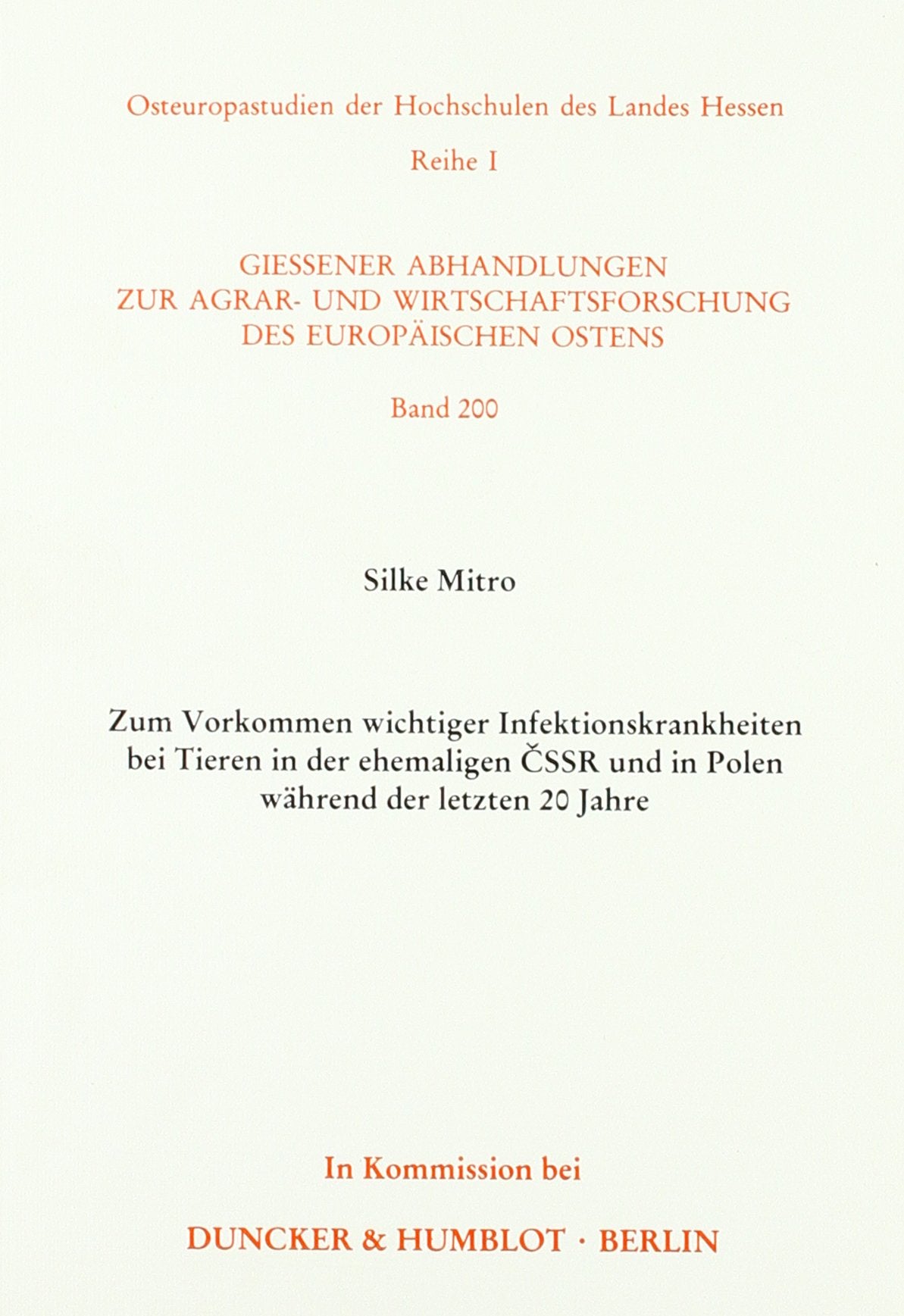 Zum Vorkommen Wichtiger Infektionskrankheiten Bei Tieren: In Der Ehemaligen Cssr Und In Polen Wahrend Der Letzten 2 Jahre (Osteu,Used